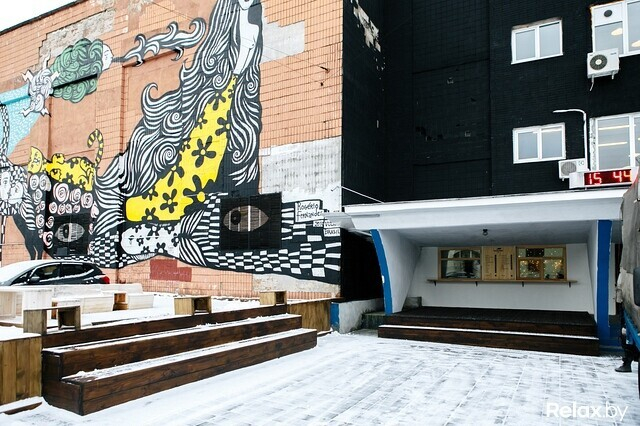 В теплое время года как нельзя кстати придется организованная для посиделок площадка со скамейками и столиками, появившаяся перед зданием во время фестиваля Vulica Brasil.