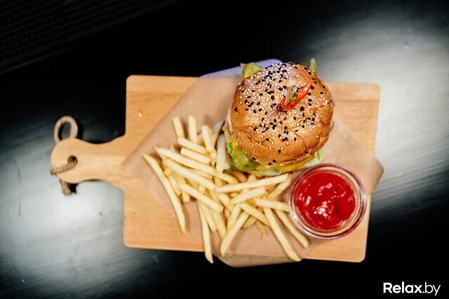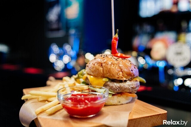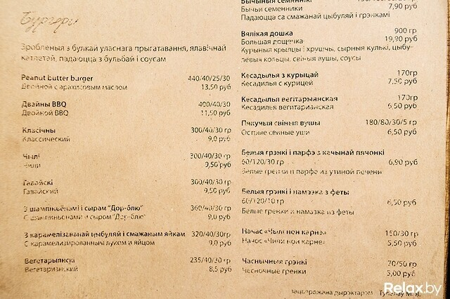В меню — бургеры (булочки для них пекут исключительно сами), свиные ребрышки и куриные крылья, драники, гренки разного толка, начос и другие воистину пивные блюда.