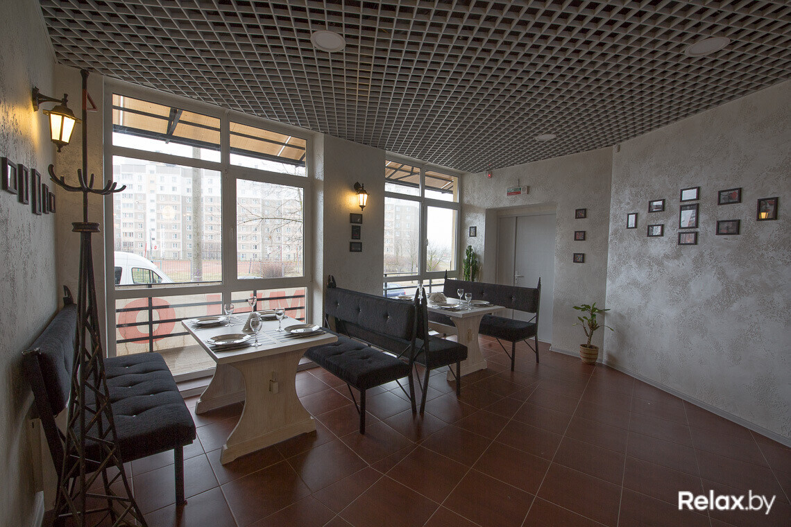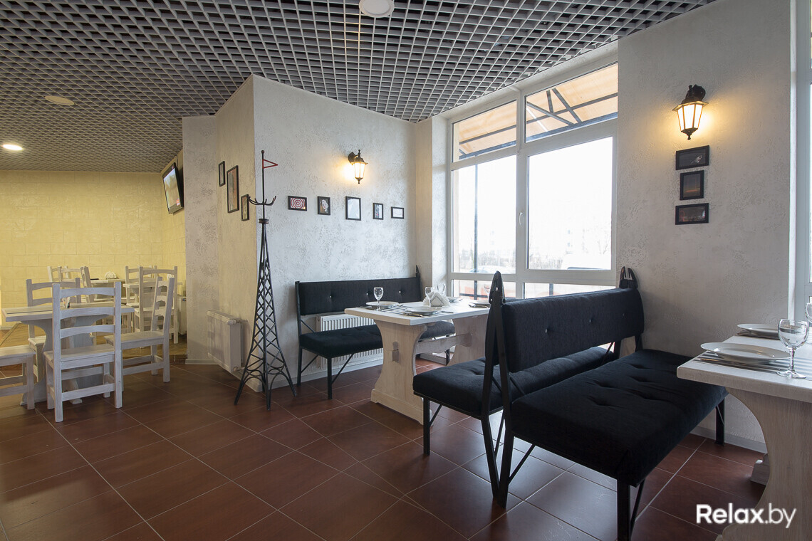 В меню — европейская и белорусская кухня, представленная как стандартными, так и авторскими блюдами. «Изюминкой» заведения создатели называют ежедневные поставки свежего мяса кролика. С 12:00 до 17:00 в кафе действует обеденное предложение, а также предоставляется 25%-ная скидка на блюда основного меню.