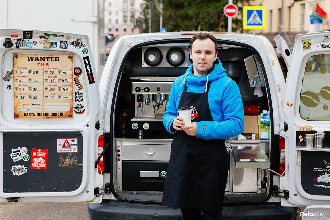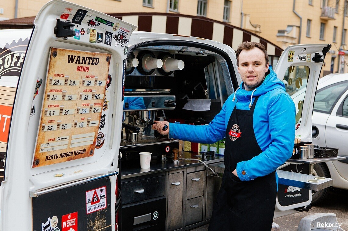 , которые вы наверняка видели на многих фестивалях, концертах и других мероприятиях Минска, открыл стационарное заведение. Здесь можно не только заказать кофе или чай с собой, но и взять в дополнение к напиткам сэндвич или десерт и перекусить, расположившись за столиком.