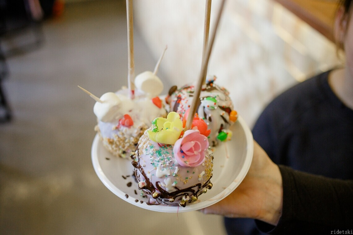 По выходным здесь проводят кулинарные мастер-классы по приготовлению яблок в карамели и шоколаде и арт-мероприятия — в ближайшее воскресенье, например, помимо мастер-класса от CandyApples, пройдет также занятие по рисованию картин на холстах. Следить за анонсом и расписанием событий можно через