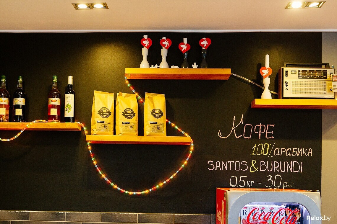 Из напитков в кофейне предлагают натуральные чаи, алкогольный и безалкогольный (на вишневом или гранатовом соке) глинтвейн и, конечно, кофе. Последний представлен как в стандартных вариациях (эспрессо, американо, капучино и другие), так и в составе необычных фирменных коктейлей — например, халвичный или клубнично-зефирный латте.