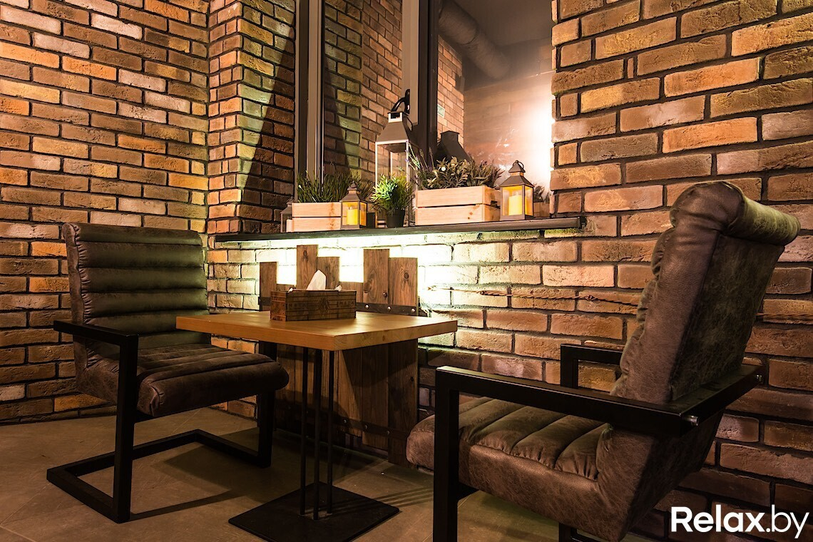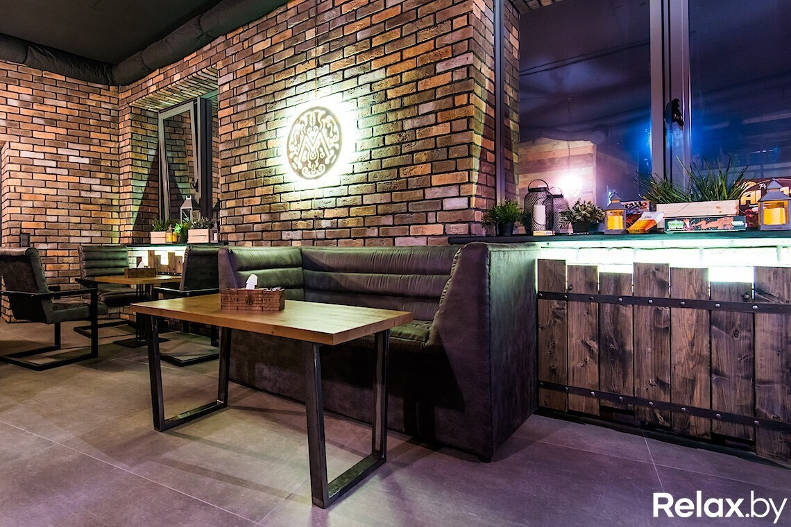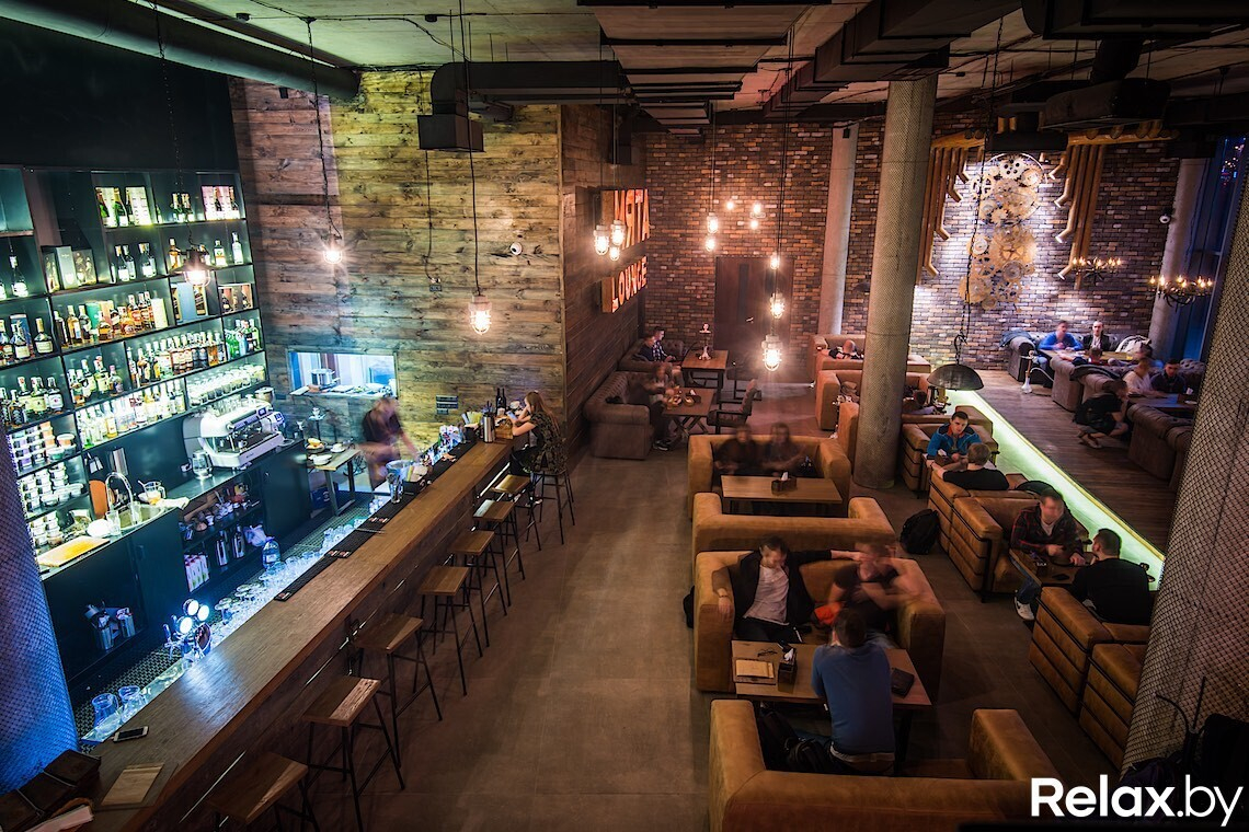 Интерьер заведения отсылает к лофту: здесь фасадные окна от потолка до пола, кирпичная кладка на стенах, грубая стяжка потолка, ржавый металл и амбарное дерево. А еще высокие потолки, мебель из состаренной кожи и приглушенный свет. Отдохнуть получится по-разному: выпить кофе или пообедать днем, поиграть в «настолки» вечером, послушать живой вокал или dj-сеты в выходные.