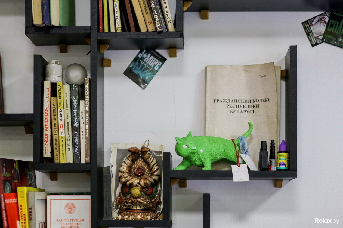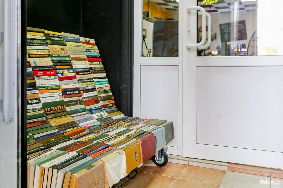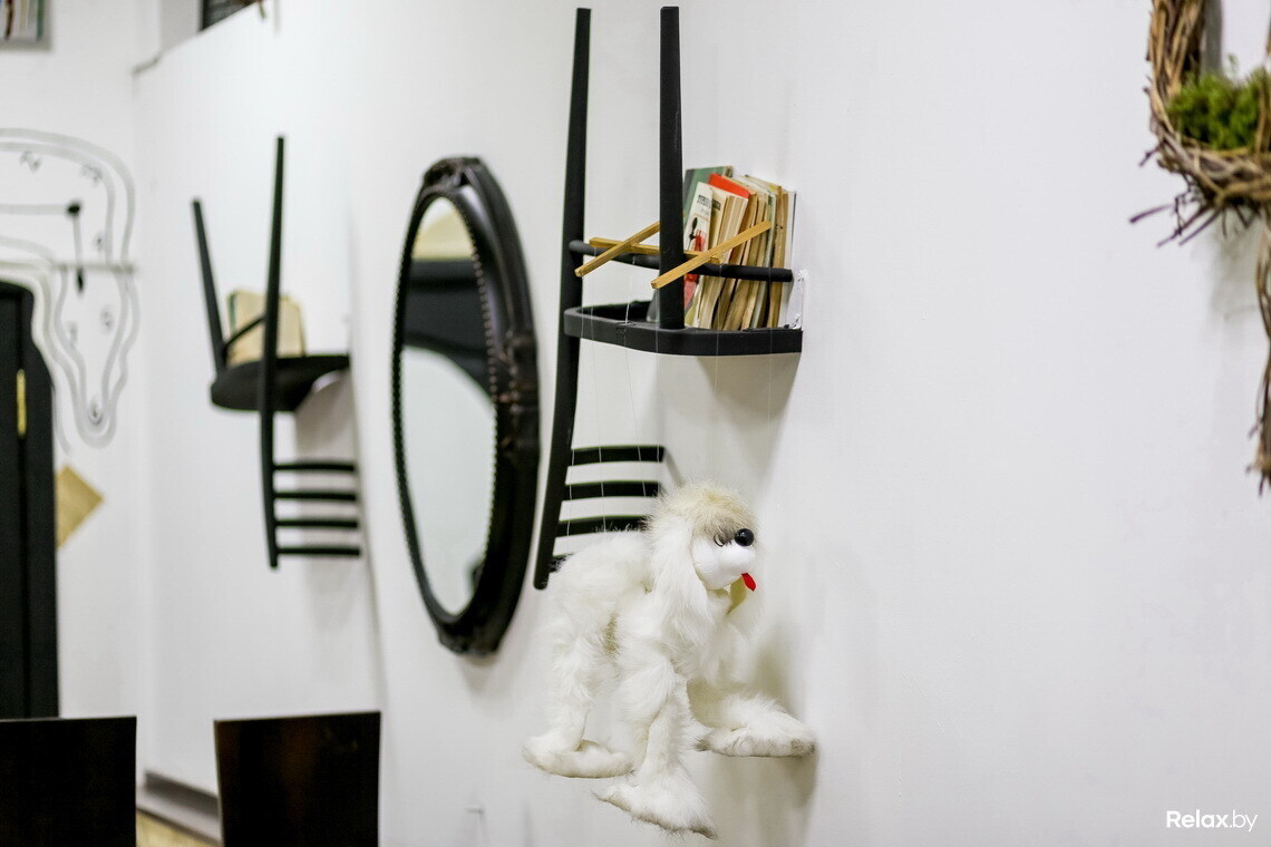 Интерьер заведения ребята «слепили из того, что было: какие-то предметы приносили друзья и знакомые, что-то дома было, что-то собирали через соцсети». Так в кафе появились «летающие» книги, настоящий мох, яркие картины, стулья на стенах. На последних, к слову, еще недавно висели красивые шляпы, однако во время тестовой вечеринки в прошлую пятницу, на которой собралось около 200 человек, их унесли. «В целом, интерьер получился сумбурным и уютным, как мы и хотели».