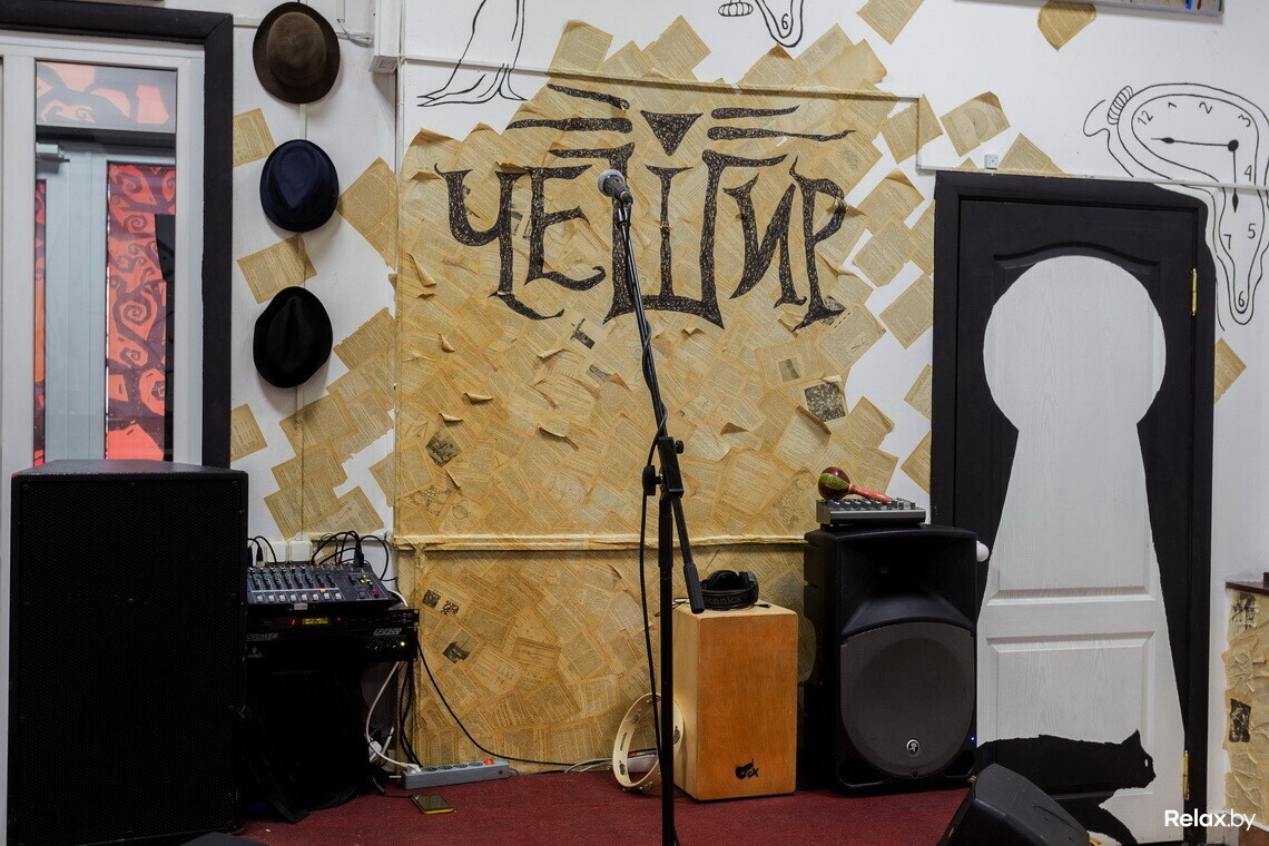 Днем в «Чешире» будет играть джаз на пластинках, по вечерам (ежедневно) планируются различные развлечения: выступления фокусника и молодых белорусских коллективов, которые «нередко играют лучше раскрученных групп», поэтические вечера, автограф-сессии известных артистов. Ночью в заведении будут устраивать кинопоказы, поэтому место точно станет привлекательным для тех, кому не спится.