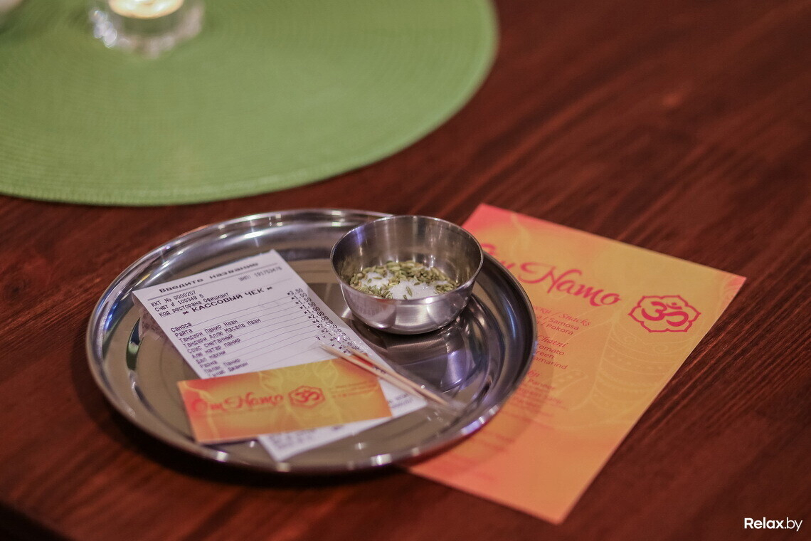 Кухня в Om Namo вегетарианская, а блюда готовит повар, специально привезенный из Индии. Первое время справляться с потоком посетителей ему помогает сам Бикаш, но в будущем штат сотрудников расширится. «Сейчас я каждый день выхожу к гостям в зал и спрашиваю, нравятся ли им наши блюда и что нужно исправить. Индусы ведь живут в стране, где яркое солнце, а потому и вкусы у них специфические — если со специями, то очень острое, если десерты, то очень сладкие. Здесь же во время приготовления блюд мы «урезаем» традиционные вкусы процентов на 30 (меньше остроты, меньше сахара), чтобы адаптировать блюда под белорусов. Но все равно прислушиваемся к мнению каждого гостя и стараемся сделать так, чтобы нравилось всем».