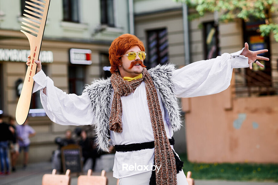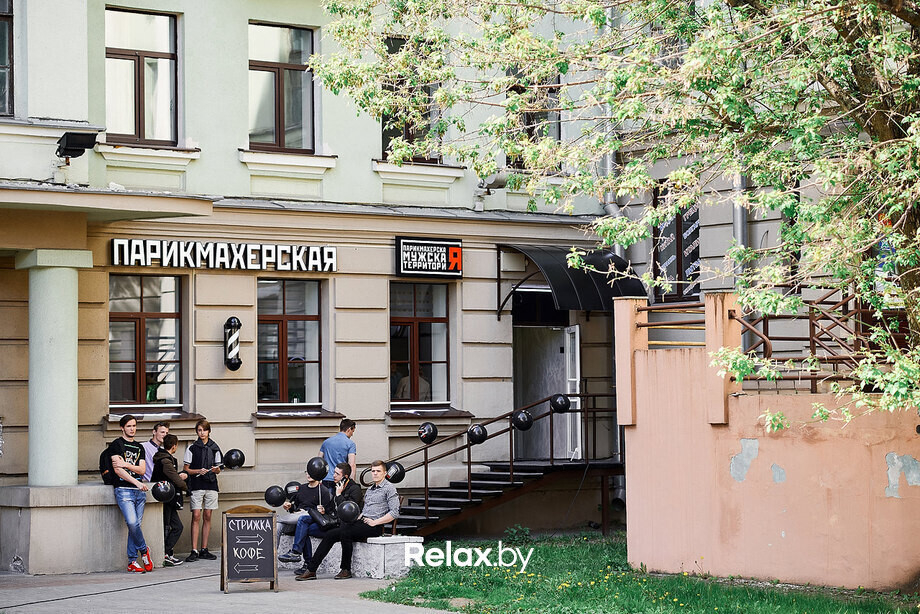 Вчера, 17 мая, по соседству с недавно появившимся на проспекте Независимости, 43 кафе-пельменной «Мука» (обзор смотрите здесь) открылась новая парикмахерская «Мужская территория», слоганом которой стала фраза «Дай волю своему Я». Мероприятие проходило прямо на улице перед входом в заведение, а праздничную атмосферу не только гостям, но и обычным прохожим создавали ведущий, диджей, полуобнаженные танцовщицы и аниматоры. Кроме того, в день открытия всех желающих в «Мужской территории» обслуживали бесплатно.