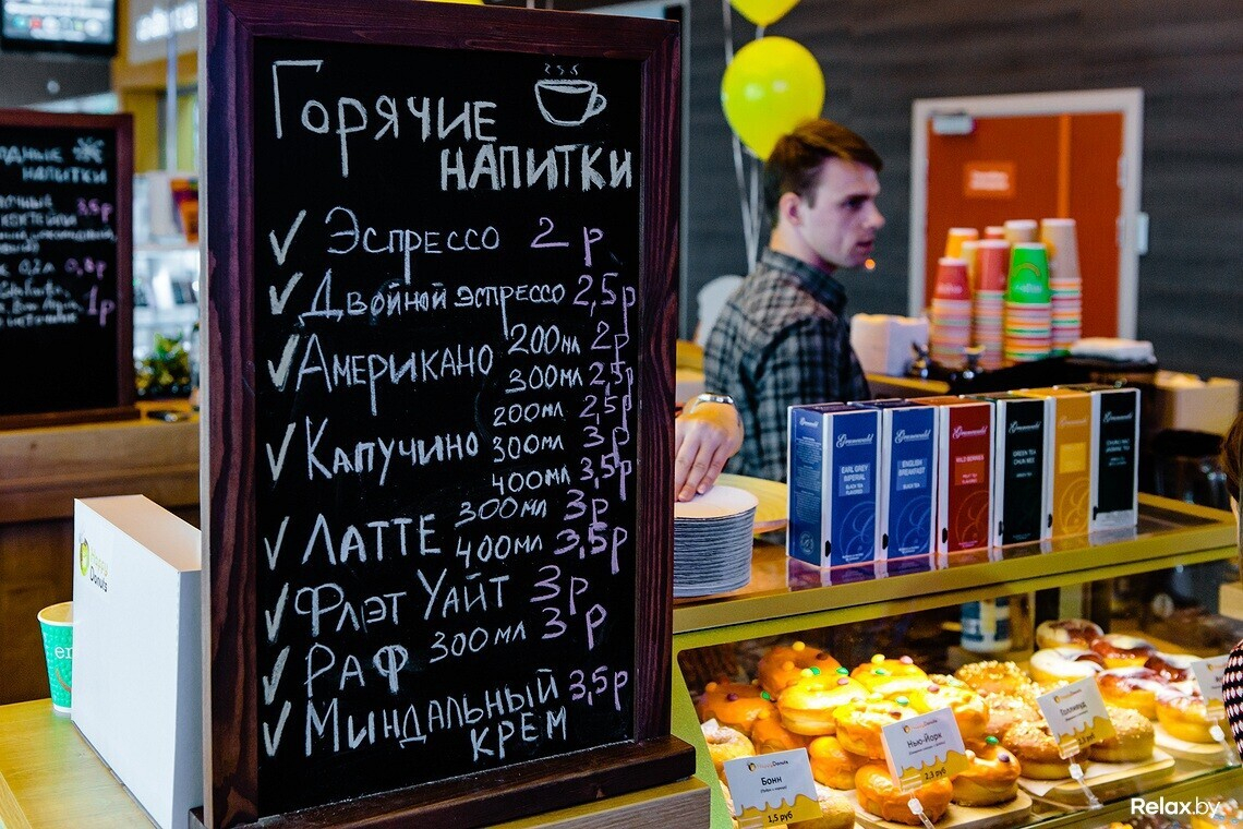 Из напитков — все популярные кофейные позиции, ароматный чай, газировка и питьевая вода.