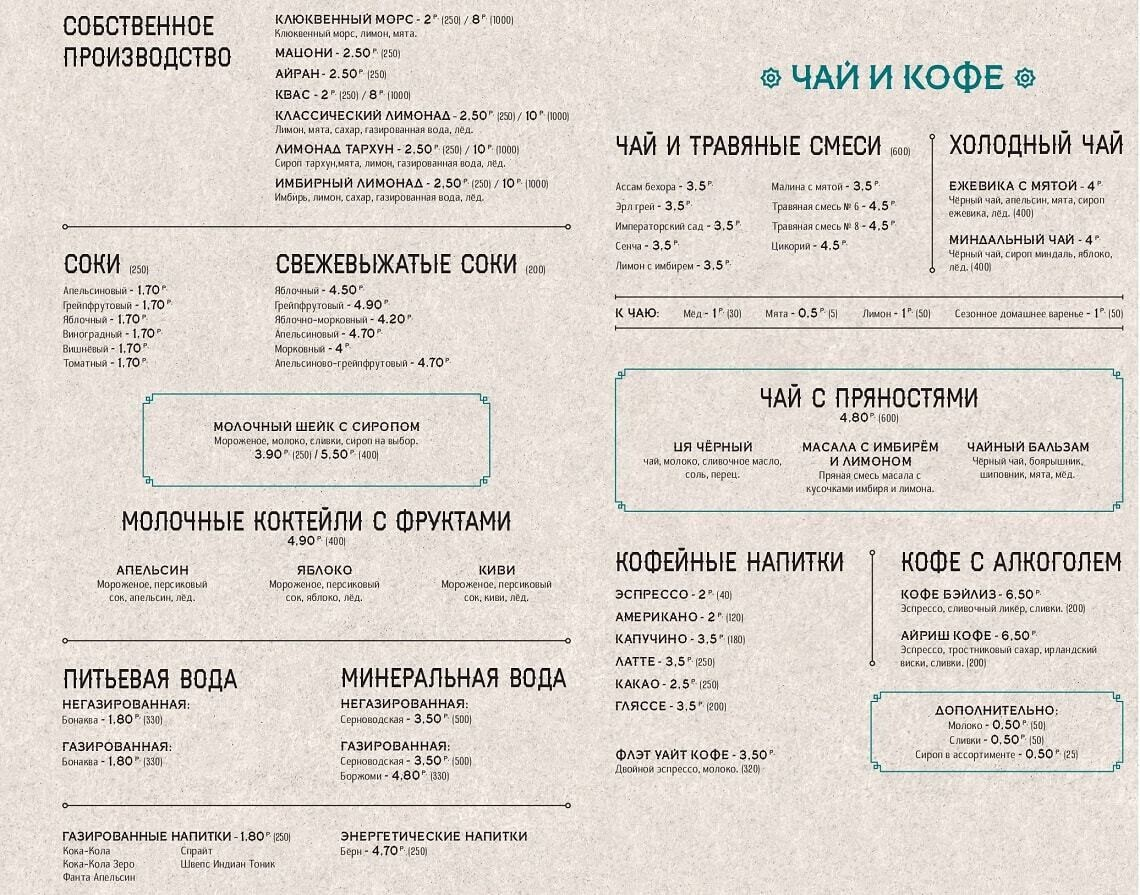 Еще тут можно купить пельмени ручной лепки навынос (свежеслепленные, а не приготовленные). Среди аутентичных напитков — приготовленные по особым рецептам мацони, айран, морс, лимонады и квас.