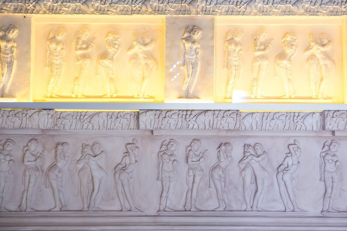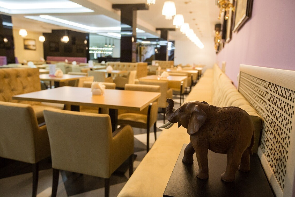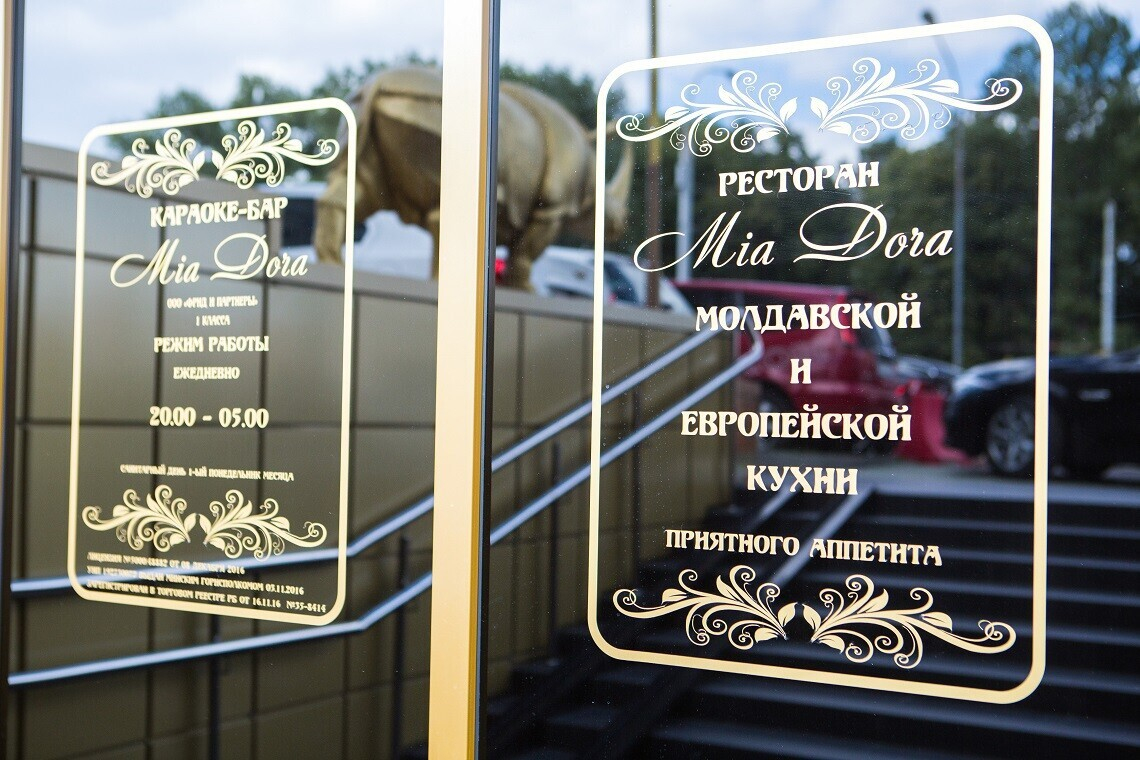 Многое в интерьере осталось от казино «Золотой носорог», но есть и новые колоритные детали. Например, телевизоры в полу заменила галька пастельных тонов. На стене караоке-зала появилась лепнина с молдавскими сюжетами. Над внешним видом заведения все еще работают, поэтому скоро стены украсят и другие детали.