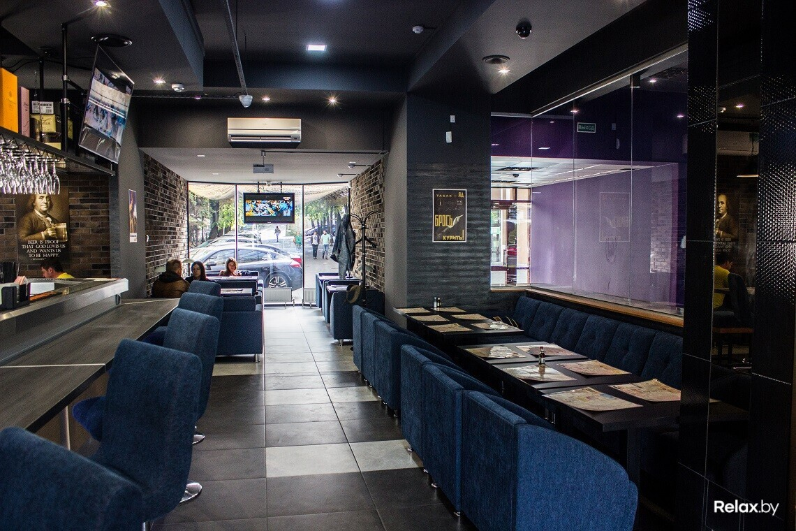 Заведение открыли владельцы ресторана «Арбат», поэтому некоторые отличительные черты можно проследить. Интерьер заведения имитирует модный нынче стиль лофт: кирпичная кладка, бетон, много металлических деталей и деревянная барная стойка. На стенах встречаются советские плакаты, призывающие выполнять нормы и трудиться, а также элементы и утварь советской эпохи. Курить в заведении нельзя.