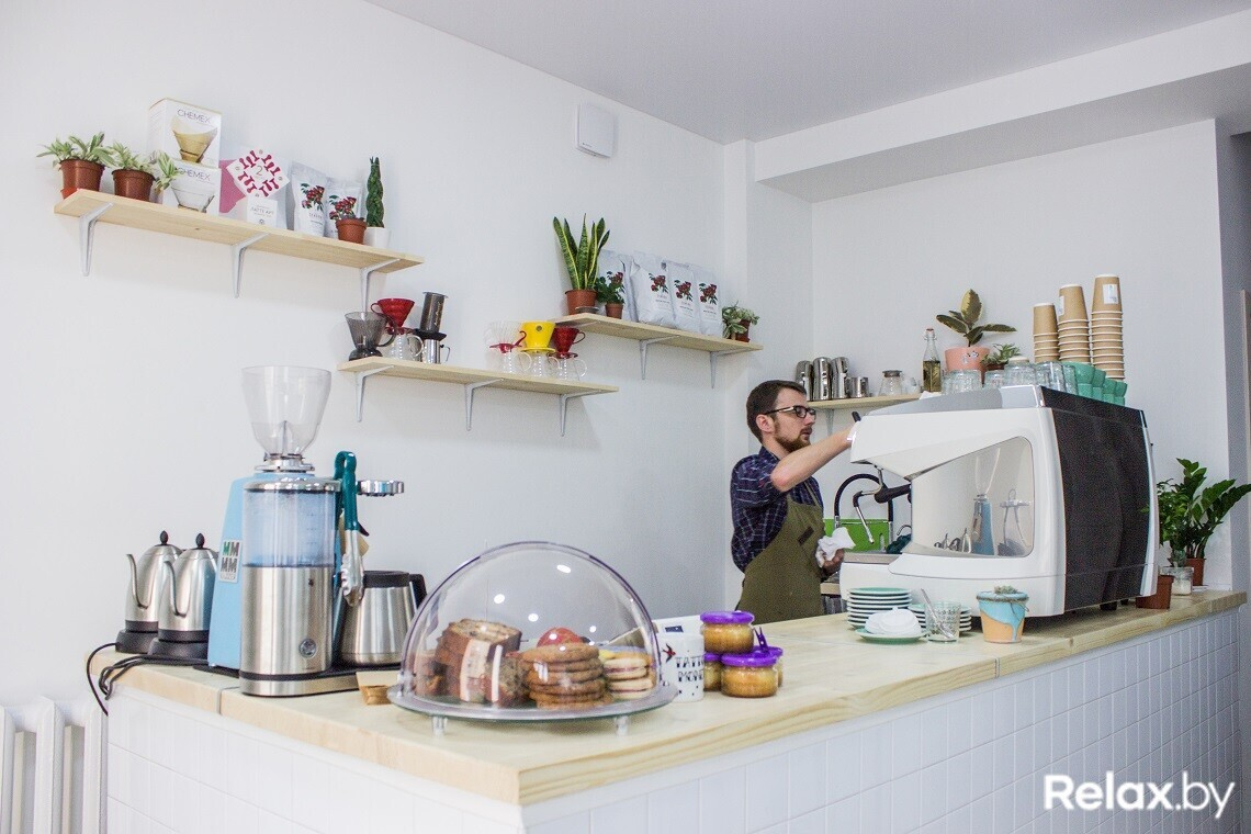 Цены на кофе в заведении — среднегородские. «Фильтр-кофе» за 3 рубля, эспрессо, капучино, крепкий американо за 3,5 рубля, австралийский лунго и латте по 4 рубля, флет-вайт 4,5 рубля, большой капучино, матча-латте и раф по 5 рублей, сезонный рафи и сезонный латте по 6 рублей. Сезонные предложения готовятся с сиропами собственного производства.