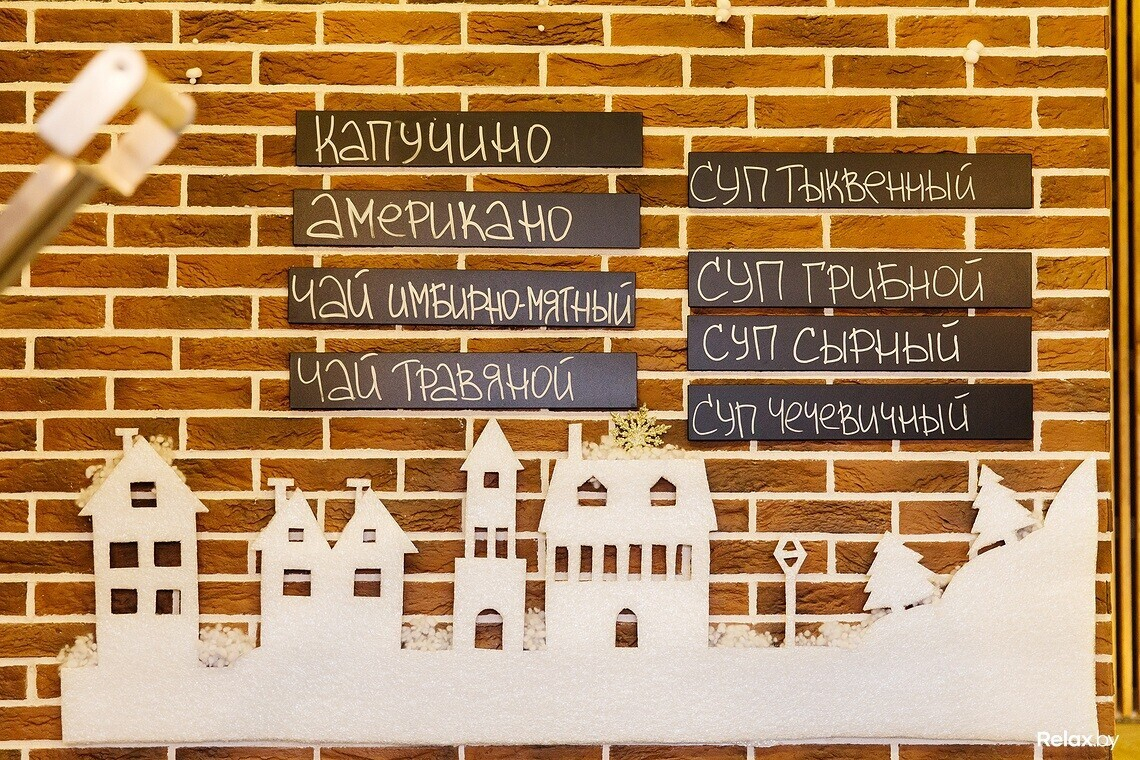 В меню кафе 4 супа: чечевичный, сырный, грибной и один суп дня — тыквенный, брокколевый, яблочно-морковный, сельдереевый, картофельный, овощной, мексиканский, гаспачо, томатный или свекольный. Из напитков предлагают кофе, имбирный и травяной чай.