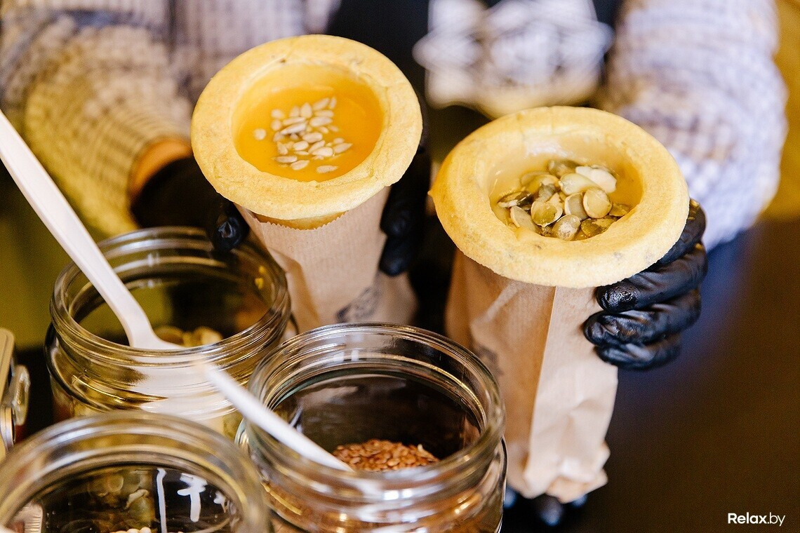 22 декабря на Козлова, 5 заработало первое кафе украинской сети, которое предлагает новый для Беларуси вид стрит-фуда: супы-пюре в съедобных хлебных стаканчиках.