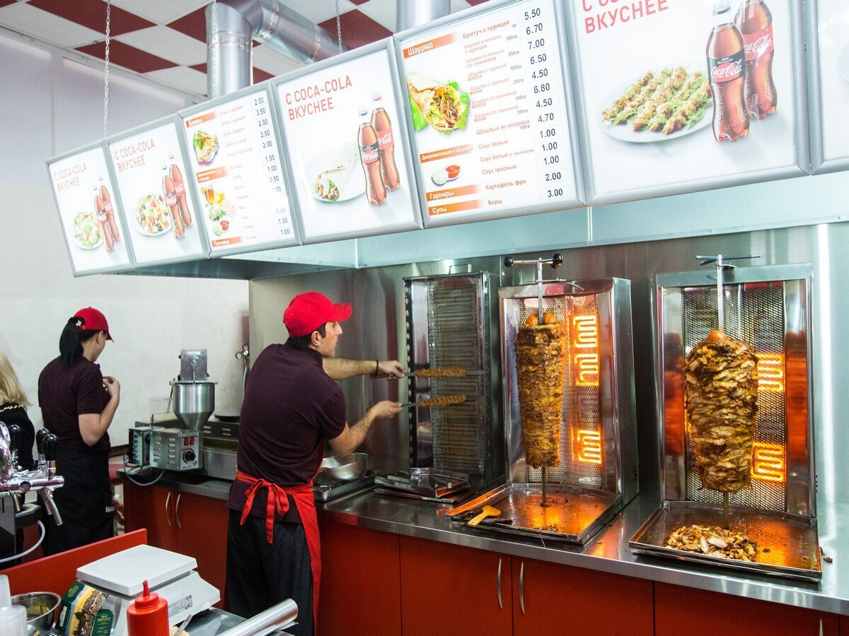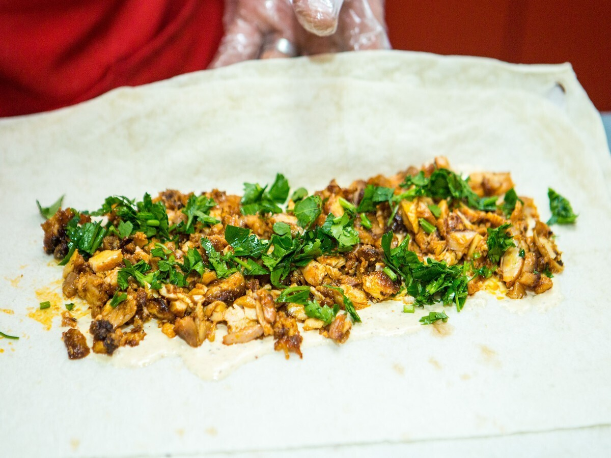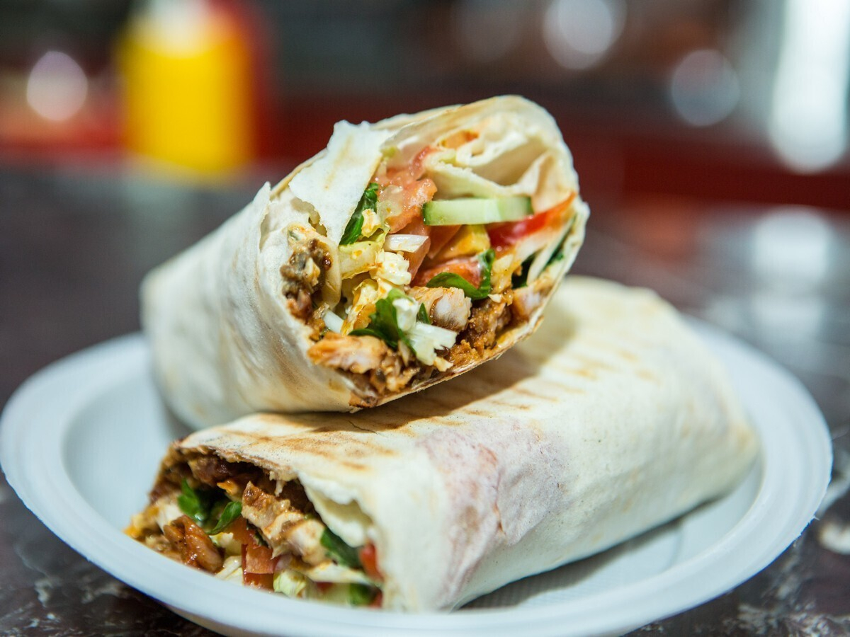 В меню заведения можно найти шашлыки, несколько видов шаурмы с различными начинками: курица, свинина, грибы и овощи. Вскоре обещают ввести позиции с телятиной и вегетарианские варианты. Кроме того, здесь можно попробовать блины с начинками: от традиционных ветчины и сыра до грибов и зелени.