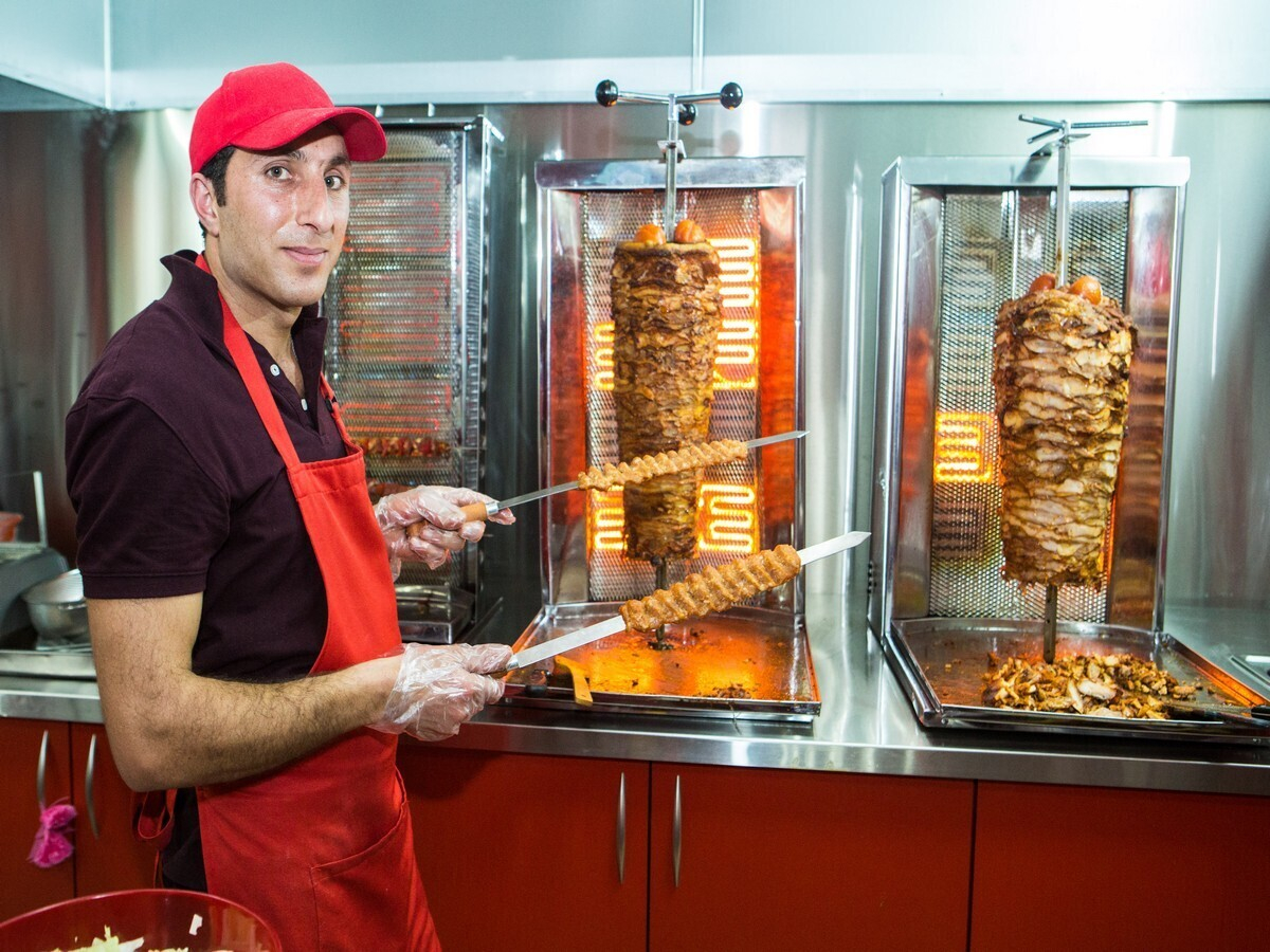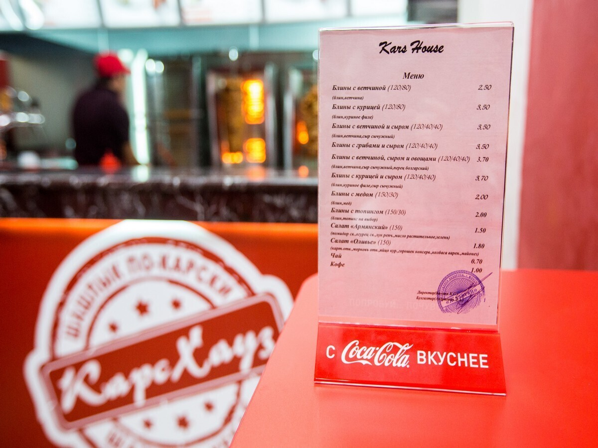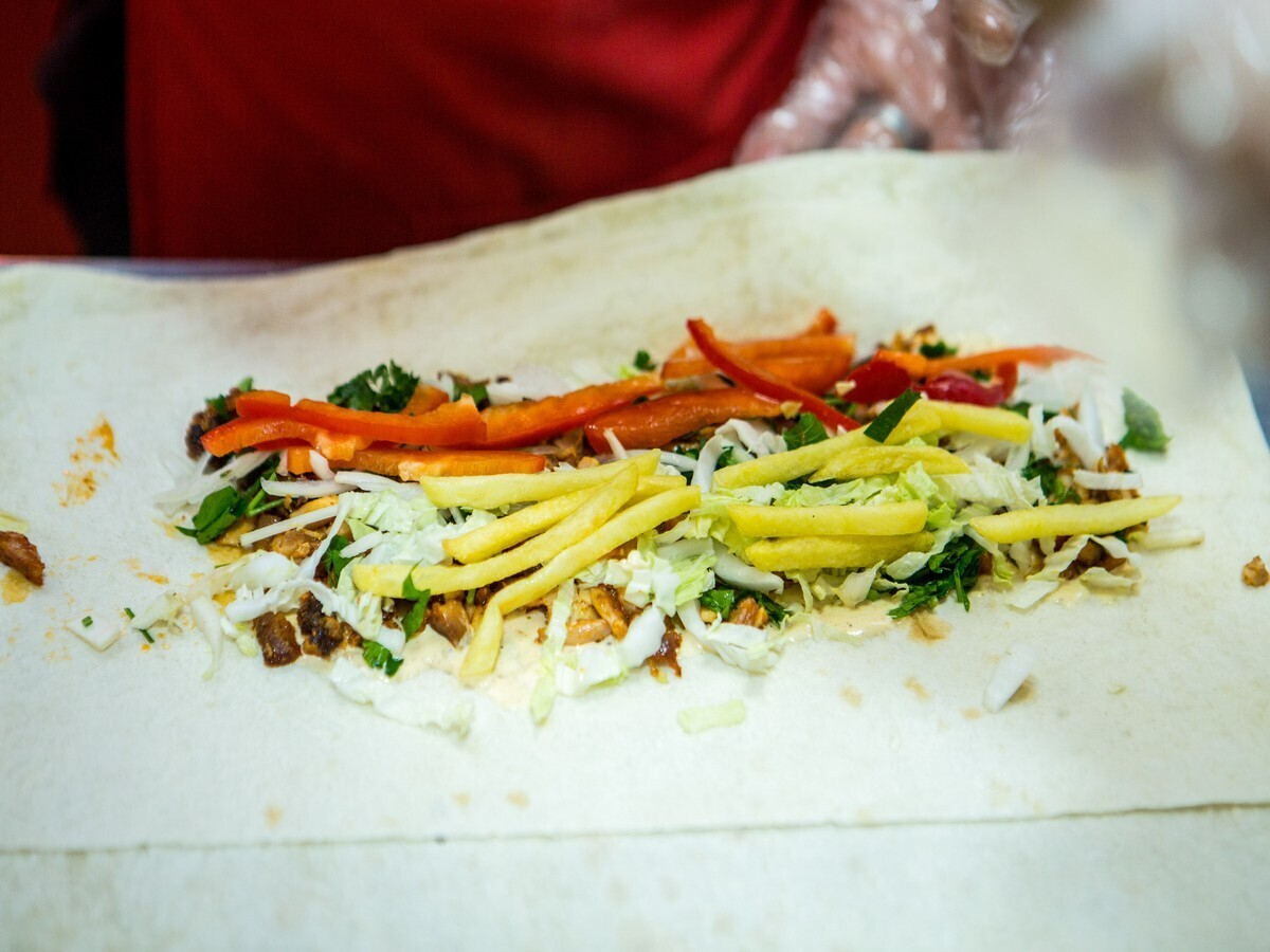 В меню заведения можно найти шашлыки, несколько видов шаурмы с различными начинками: курица, свинина, грибы и овощи. Вскоре обещают ввести позиции с телятиной и вегетарианские варианты. Кроме того, здесь можно попробовать блины с начинками: от традиционных ветчины и сыра до грибов и зелени.