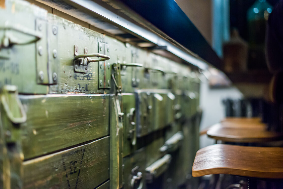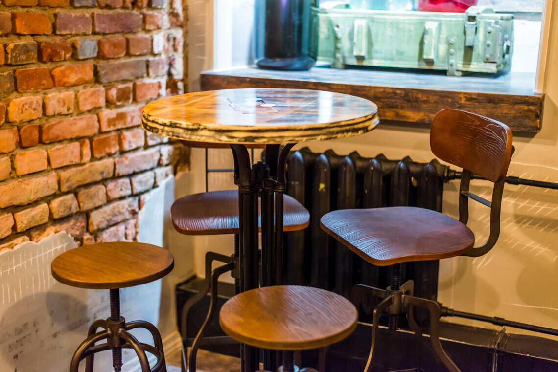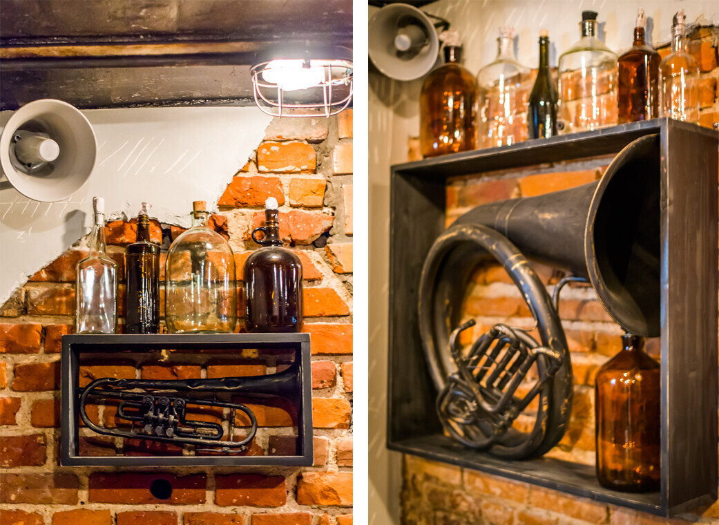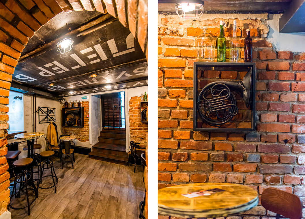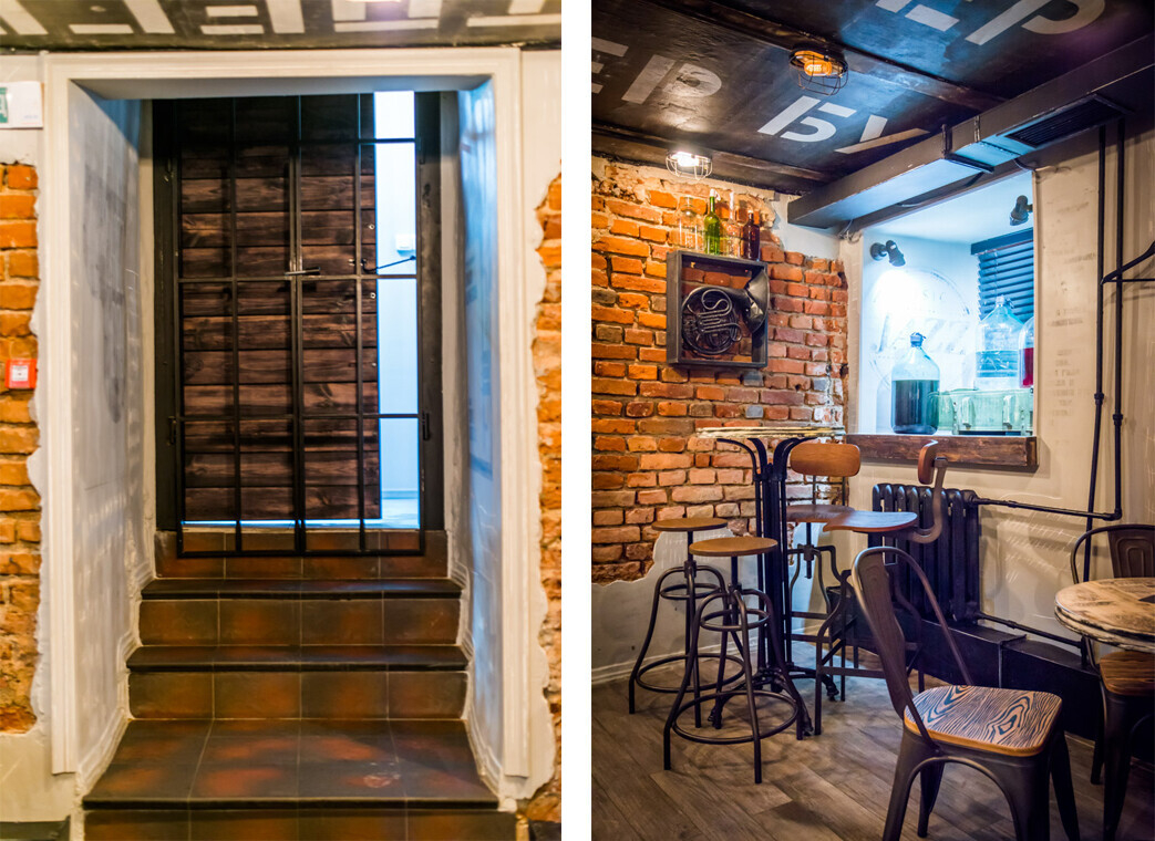 Бар расположен в подвале здания, которое было построено в далеком 1913 году. Поэтому даже стены здесь передают атмосферу старины. Помещение досталось владельцам, мягко говоря, в плачевном состоянии. Но это их не испугало, а наоборот, сподвигло сохранить общий колорит и добавить еще больше тематических деталей. Так в интерьере появились раритетные вещи, которые чудом удалось достать на старых заводах. Все элементы декора — настоящий винтаж.