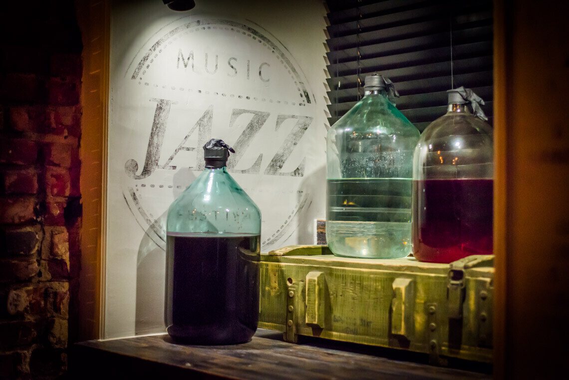«Бутлегер» — тот самый случай, когда вначале было помещение и название, а план по воплощению родился по ходу дела. И в самом процессе было много импровизации и творчества. Реализацией интерьера и разработкой задумки заведения занимался художник и дизайнер Антон Шаппо: