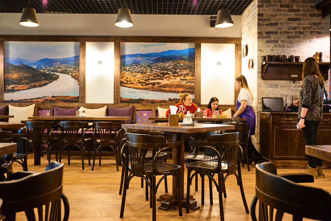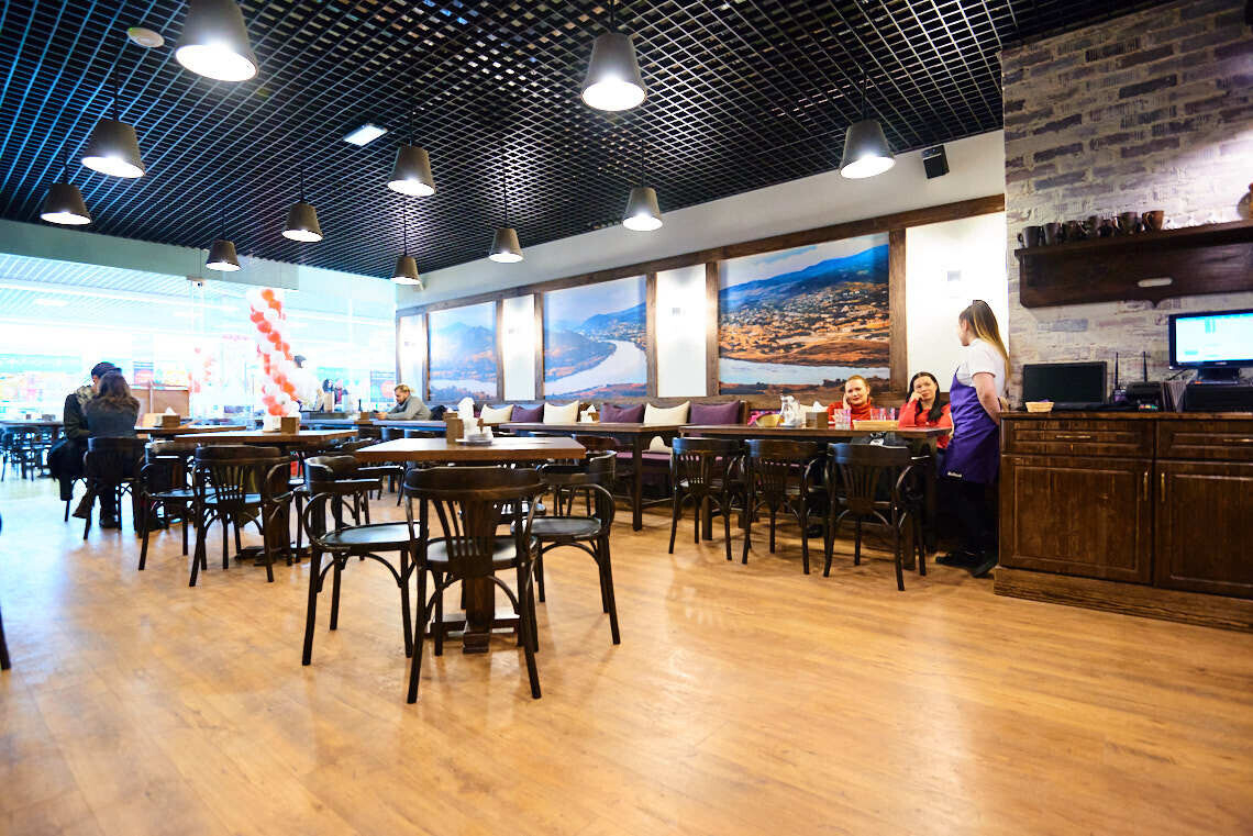 В меню традиционные хинкали с мясом или сыром, хачапури, закуски и множество блюд, приготовленных на мангале. Цены остались прежними: по рублю за штуку хинкали. Заведение работает по графику торгового центра — до 22:00.