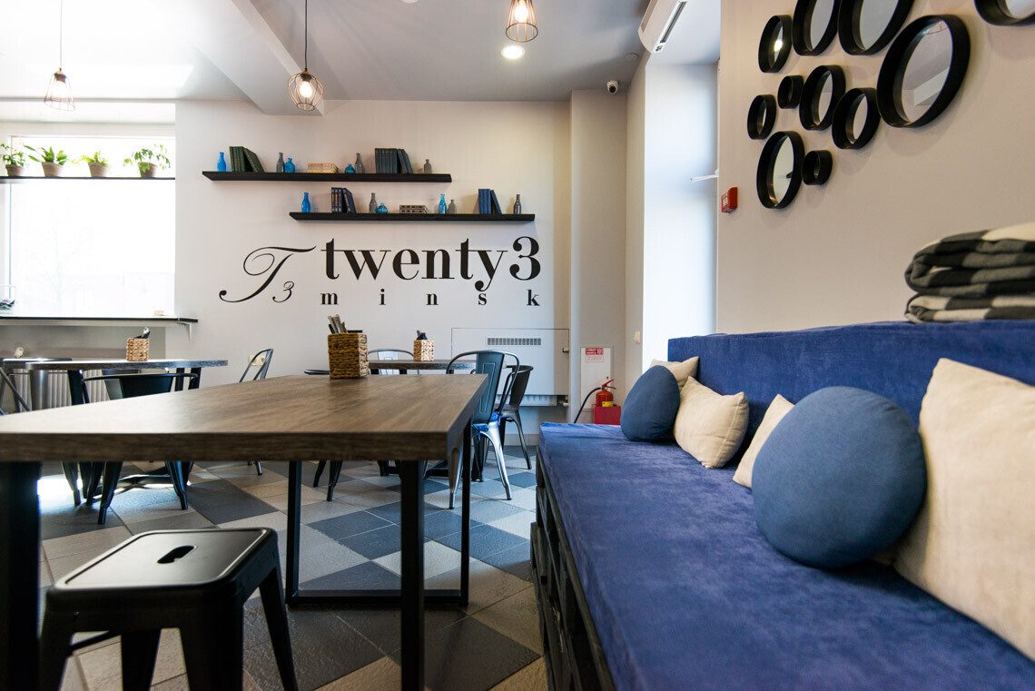 Новое заведение расположилось по улице Комсомольской, 23. Название соответствует номеру дома, соседствующего с КГБ, а фоновая музыка создает атмосферу европейского ресторанчика. Relax побывал в гастробаре и теперь рассказывает читателям об этом месте.