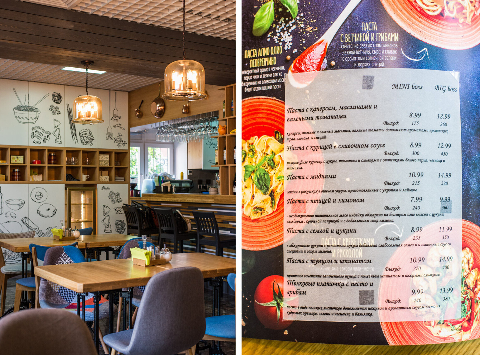 — Конечно, всегда нелегко начинать в такой узкой нише. Но мы стараемся, развиваемся. Скоро полностью обновим меню, чтобы люди не привыкали и не было повторений, — этого удалось избежать команде и в оформлении «Этти Спагетти». — Дизайном занималась креативная Ольга Агибалова, картины создавала нестандартная Татьяна Барановская, экстерьер был на Ольге Радовской. Идею логотипа с витиеватыми макарошками воплощала художник-дизайнер Така Тихонова.