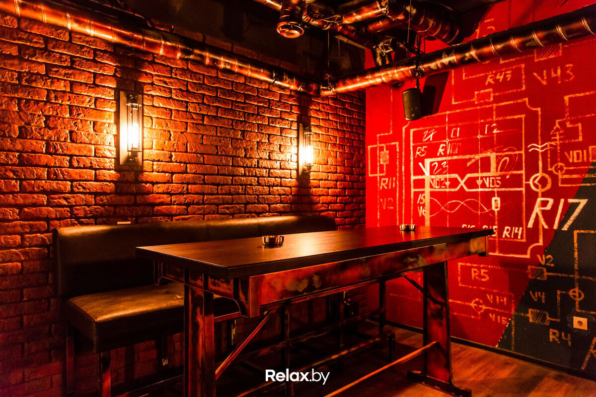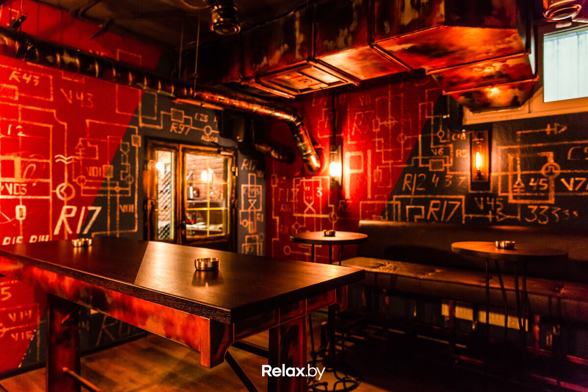 В самом заведении есть основной зал и курительная lounge-зона. В первом разместится сразу до 50 человек. Для этого установлены высокие барные столы и стулья. В курительной зоне можно заказать кальян или просто расслабиться в более уединенной обстановке.