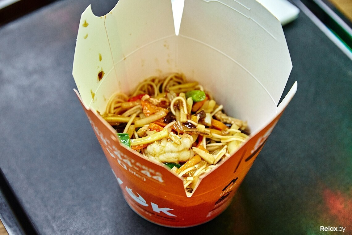 Цены на готовые блюда ниже, чем в доставке. Так, курица в соусе с лапшой удон будет стоить 7,50 рубля, столько же — курица в соусе карри с рисом басмати. Из супов в WOK представлены «Том Ям» с морепродуктами и мисо суп с тофу за 6 и 4 рубля.