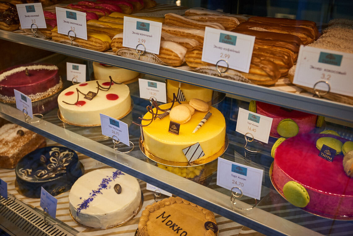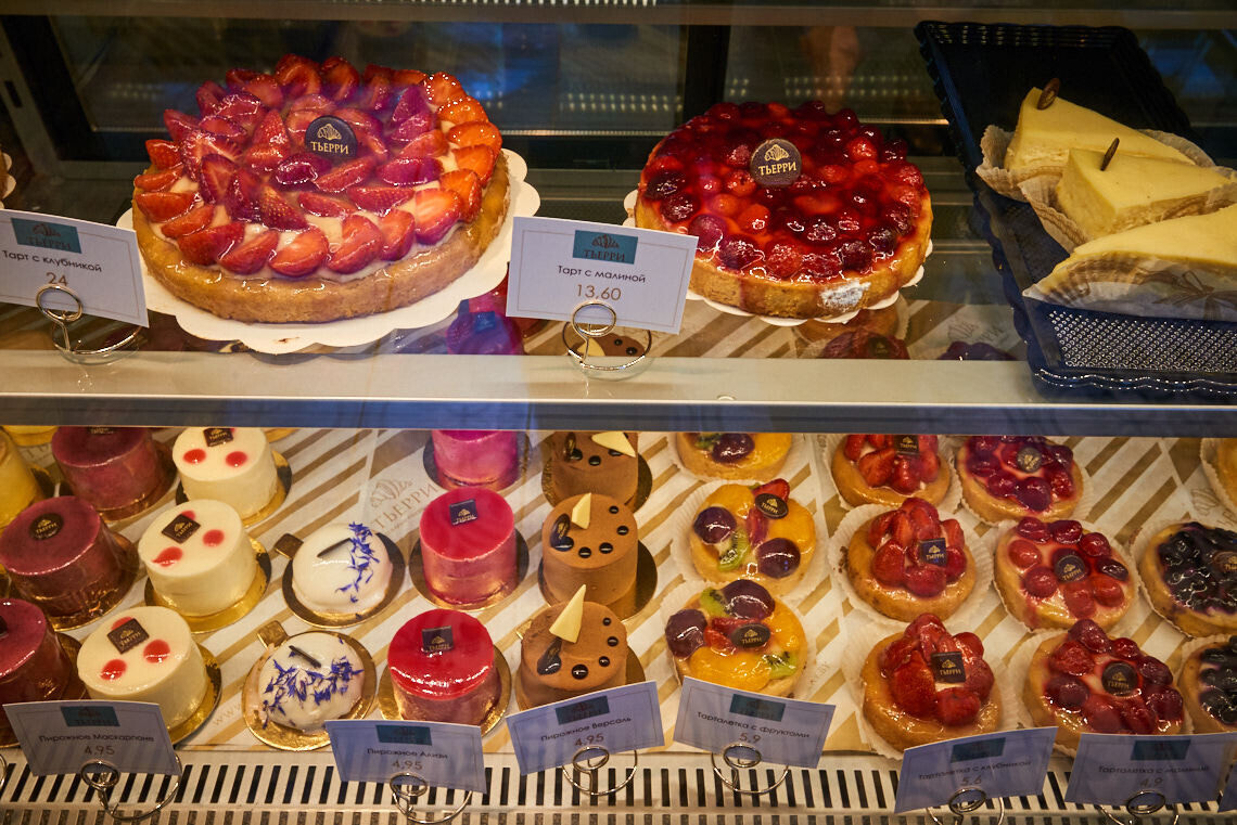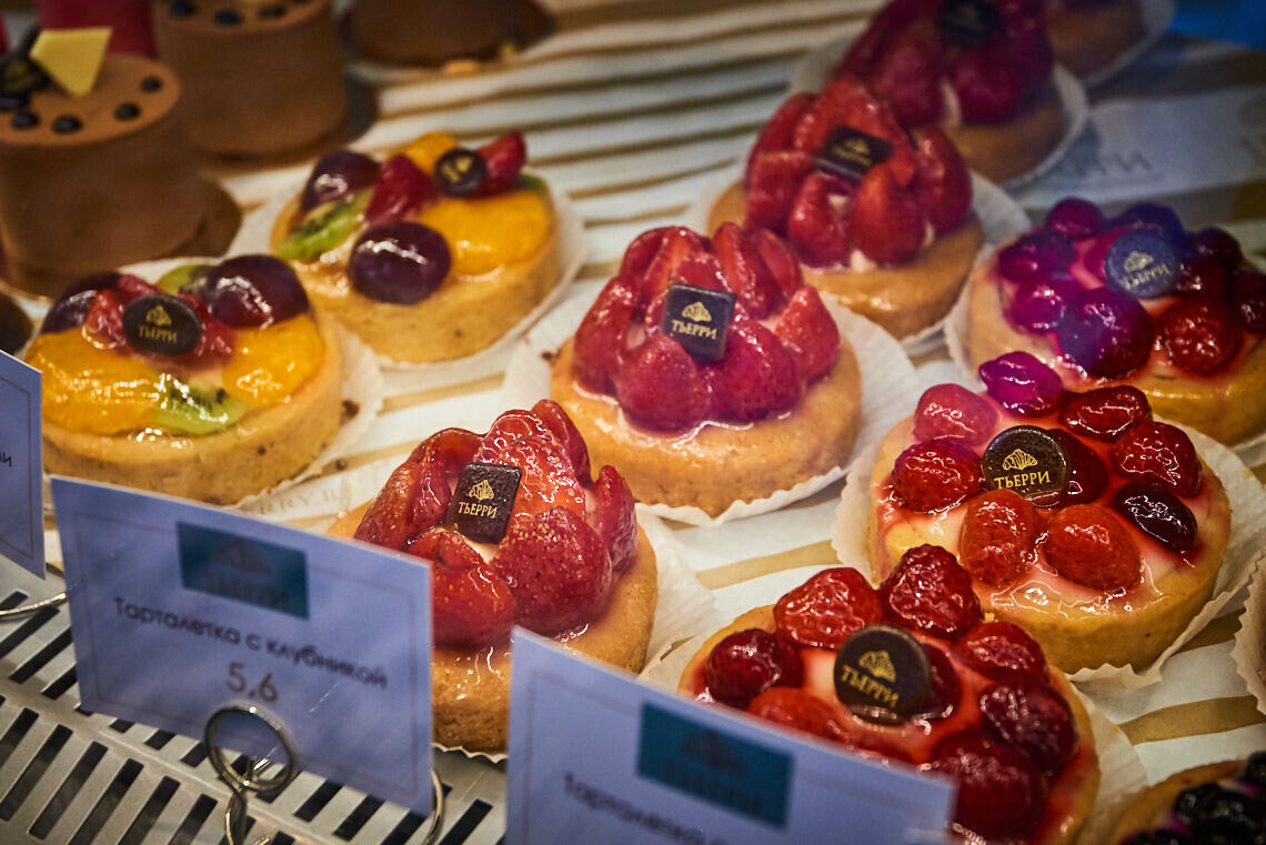 В отличие от других заведений сети, в новом ТЬЕРРИ появился торт мокко, медовый, творожный и «Хельсинки», а также летние десерты с натуральными ягодами.