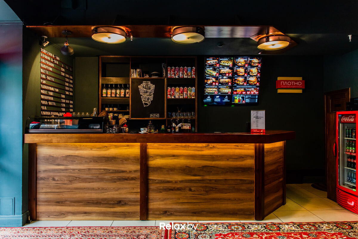 Бургерсэндвичная «Плотно» находится недалеко от площади Якуба Коласа, на Кульман, 3. Кафе работает ежедневно с 11:00 до 06:00.
