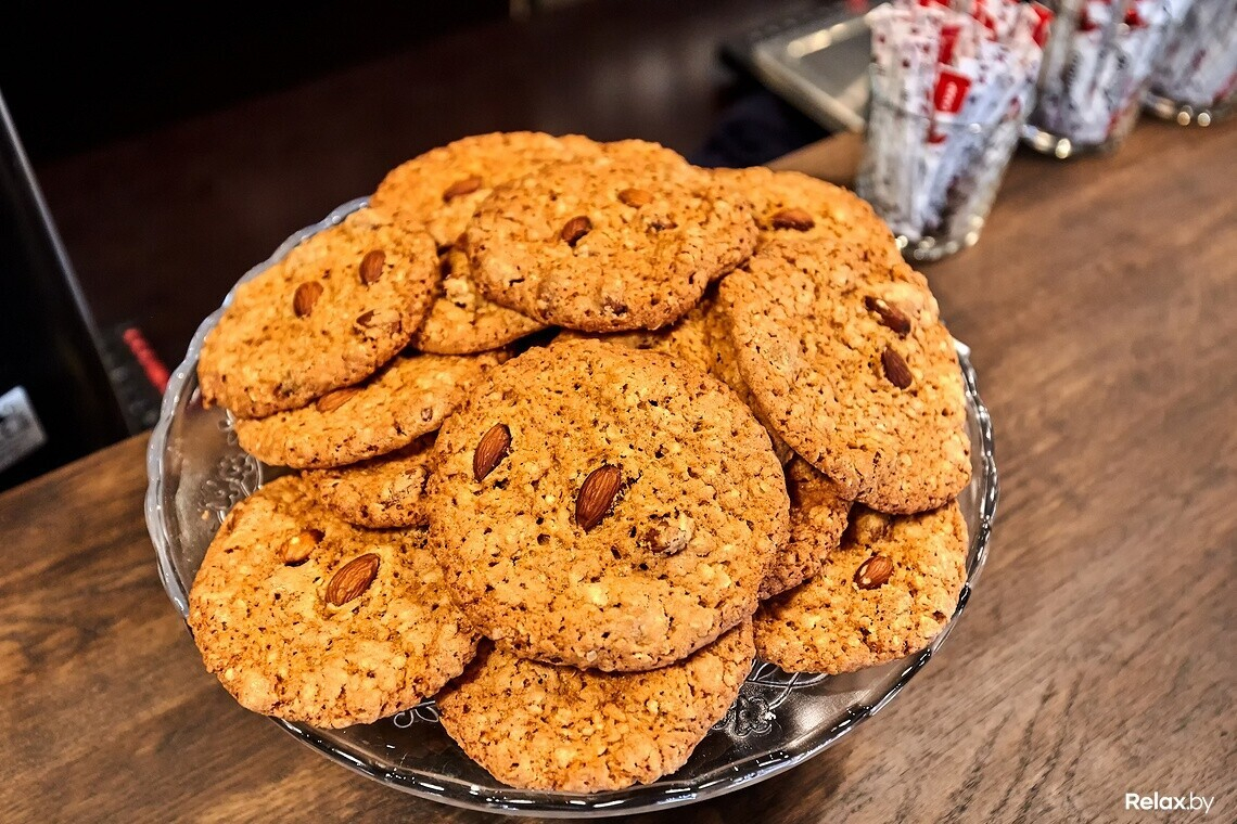 Из съестного в «Кофейной кухне» есть конфеты, шоколад и миндальные печенья. Заведение работает ежедневно с 09:00 до 21:00.