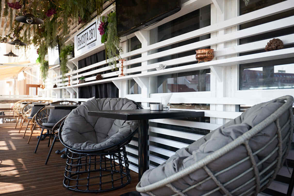 «Высота 281» заняла два этажа, первый из которых уже работает вовсю, а второй готовится к открытию. Кроме этого, для гостей есть две террасы: летняя и крытая, специально созданная для холодных пор года. По словам владельца заведения, она будет единственной работающей зимой в Старом городе.
