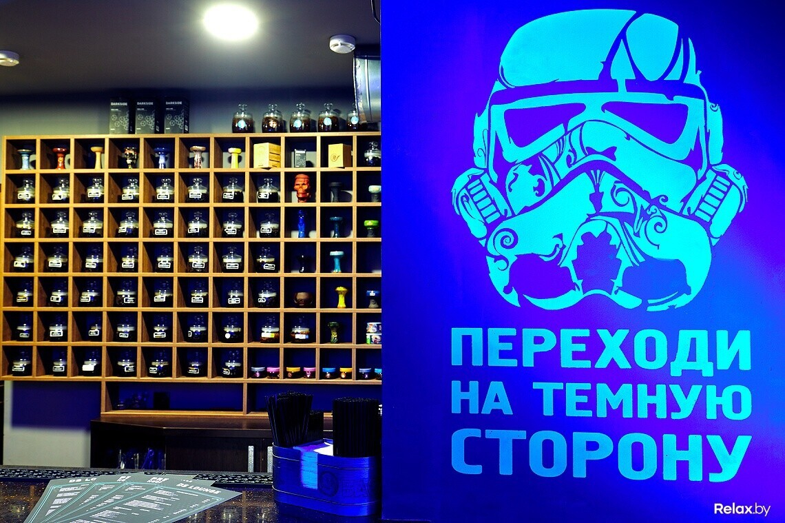 Заведение относится к первой белорусской кальянной франшизе Premium hookah club и выдержано в стилистике Звездных войн: на стенах изображения имперских штурмовиков, а элементы декора подсвечены светодиодами. Relax узнал, что еще будет в Darkside lounge.