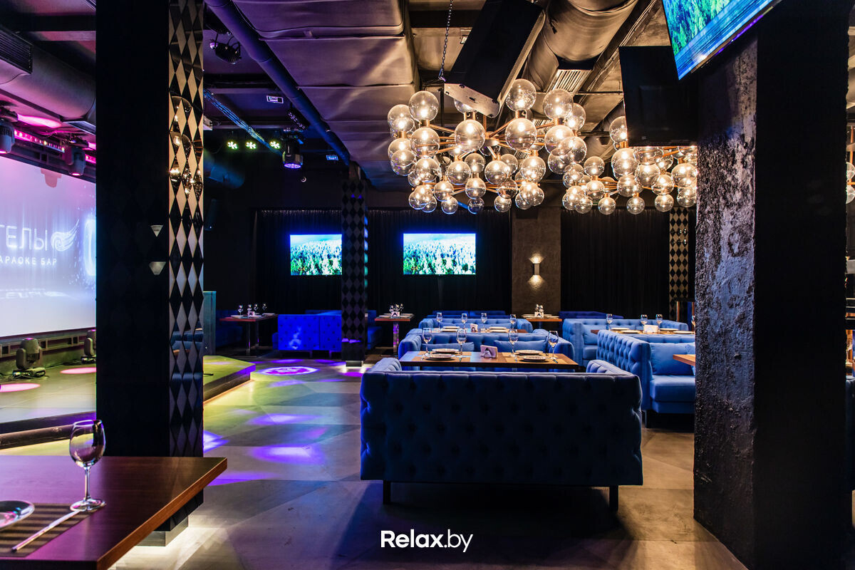 Абсолютно другой вариант отдыха представлен в этом зале. Более камерная, в некотором роде даже интимная обстановка, шикарная подсвеченная сцена и микрофоны в ретростиле создают уникальную атмосферу для тех, кто хочет почувствовать себя звездой. Сюда стоит заглянуть тем, кто хочет петь сам, поскольку меньшее количество посетителей (здесь всего 7 столов на 32 человека) позволяет рассчитывать, что очередь для исполнения композиции подойдет быстрее.
