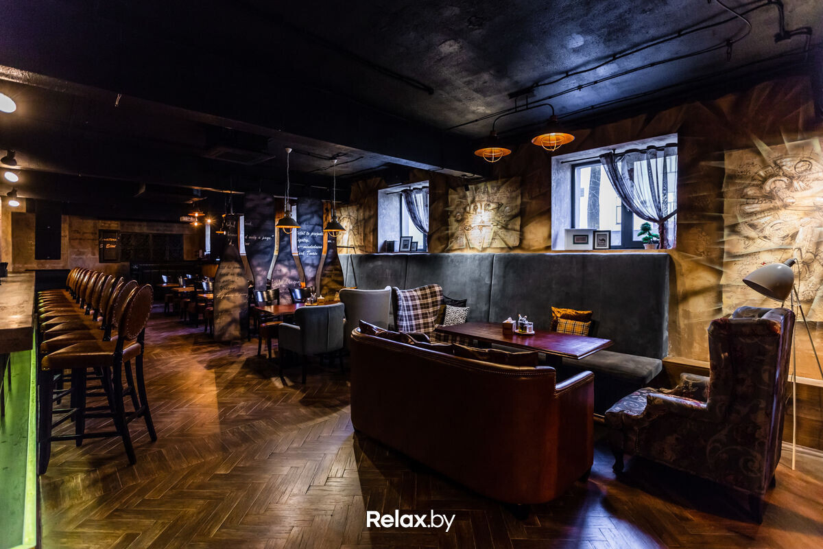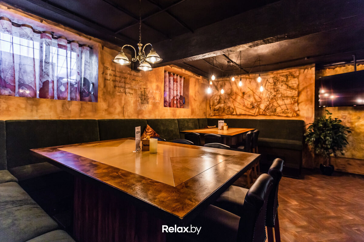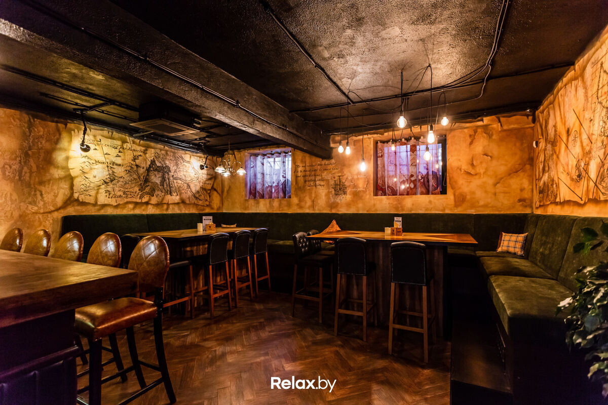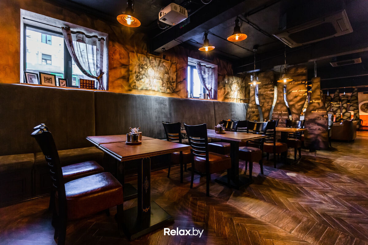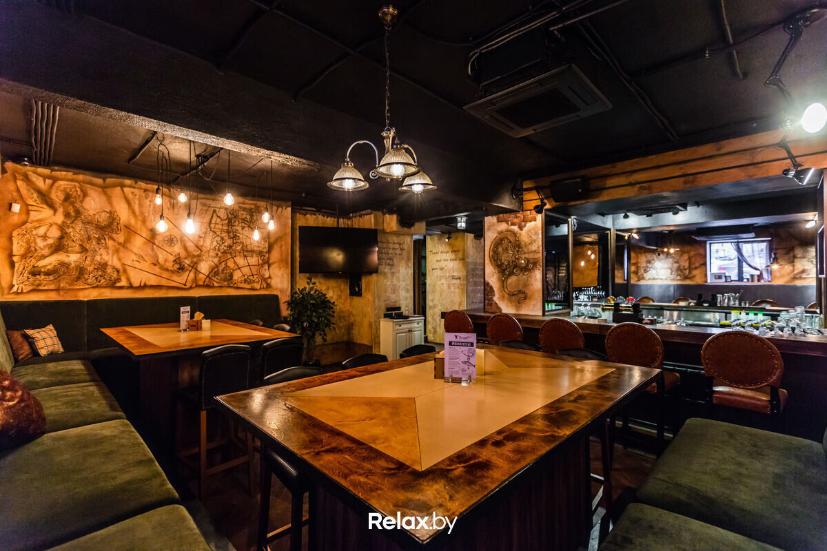 Этот герой — авантюрист и путешественник, а заведение представляет собой его кабинет. В нем росписи в стиле путевых зарисовок и оставленные о разных странах заметки.