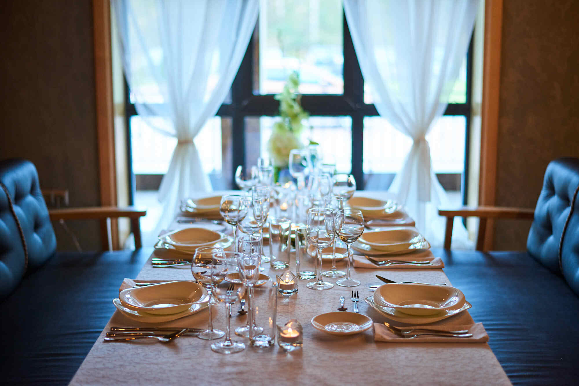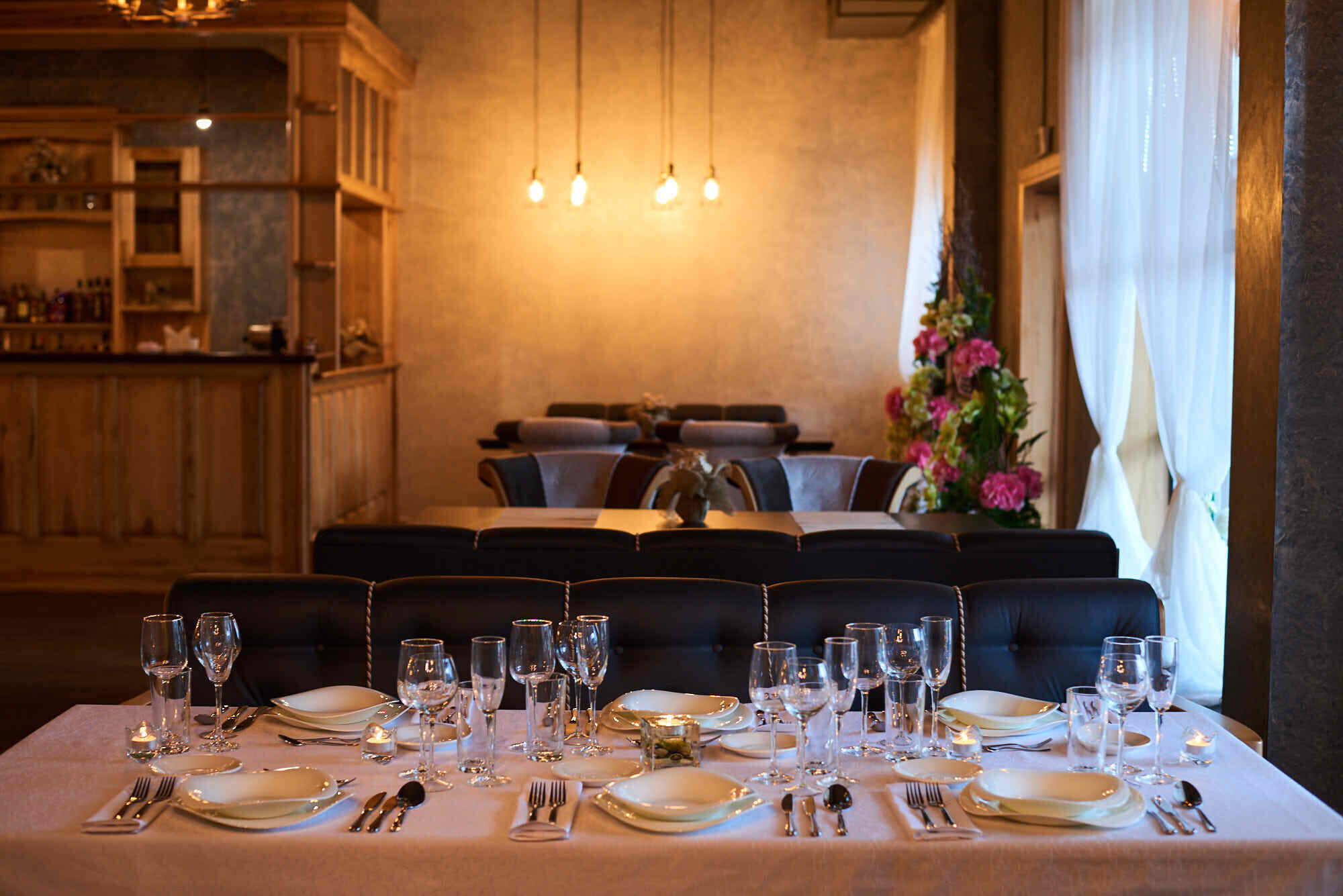 Сдержанная цветовая гамма в интерьере настраивает гостей на семейный отдых и является универсальной, при оформлении зала для любого торжества. Панорамные окна, максимум света, точечное освещение плюс приятная фоновая музыка создают в ресторане Husaria максимальный уют и удобство.