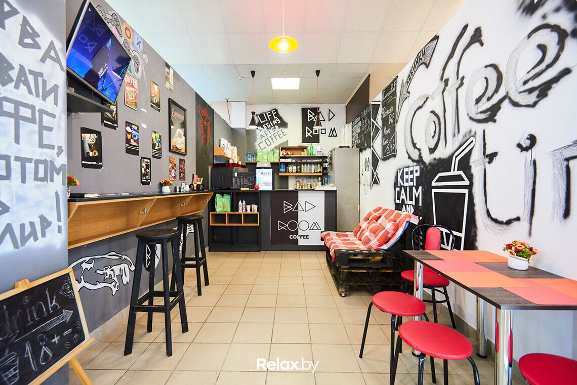 Кофейня Bad Room открылась не так давно на третьем этаже ТЦ «Московско-Венский» на проспекте Независимости, 58. Теперь здесь можно не только пройтись по магазинам, но и выпить кофе, чай или безалкогольный глинтвейн с горячим сэндвичем или маффином.