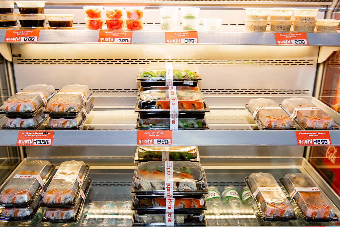— Все наши роллы свежие и качественные. У нас есть свое производство, и с момента, как их приготовят и транспортируют на точку, проходит максимум 10 минут. Здесь же мы просто погружаем роллы в холодильник. Так, гости, отправляясь из торгового центра домой, не тратят время на долгое ожидание заказа. Вы просто выбираете уже готовый сет и идете с ним на кассу.