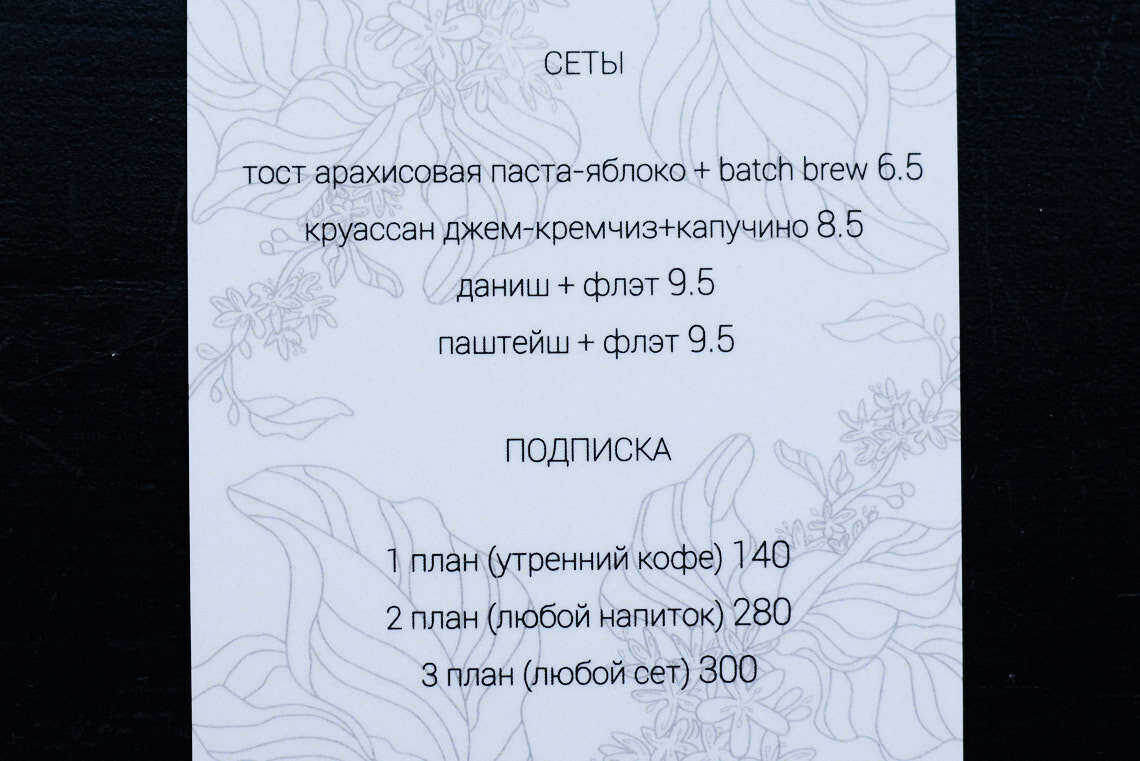 — Это практически то же самое, что заплатить за интернет или купить абонемент в спортзал. Мы позаимствовали ее из европейской и американской практики. Люди по дороге на работу заходят в кофейню, оперативно получают свой кофе и бегут дальше по делам. Бодрящий кофе — отличное начало дня! У нас уже есть пара гостей, которые оформили такую подписку. Это очень удобно, плюс гости автоматически получают скидку в 20% на любой десерт или чашку кофе.