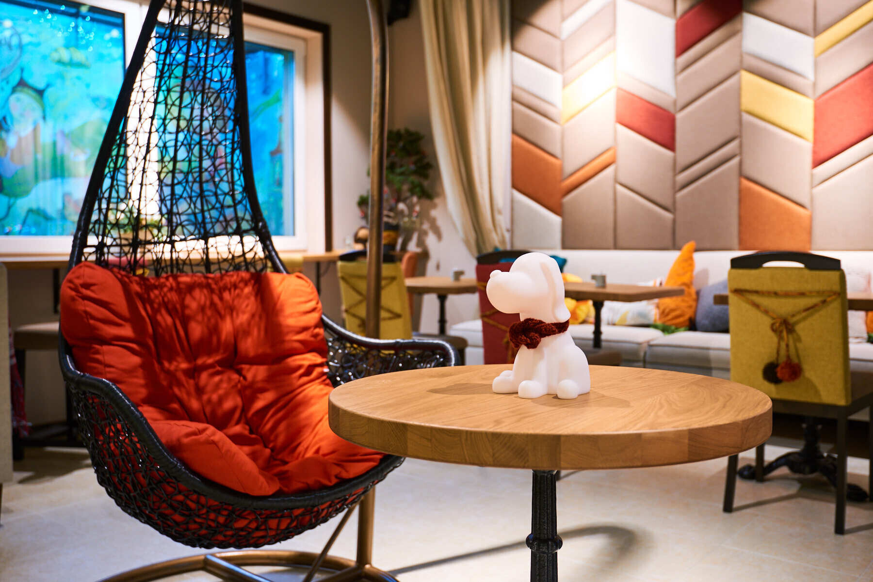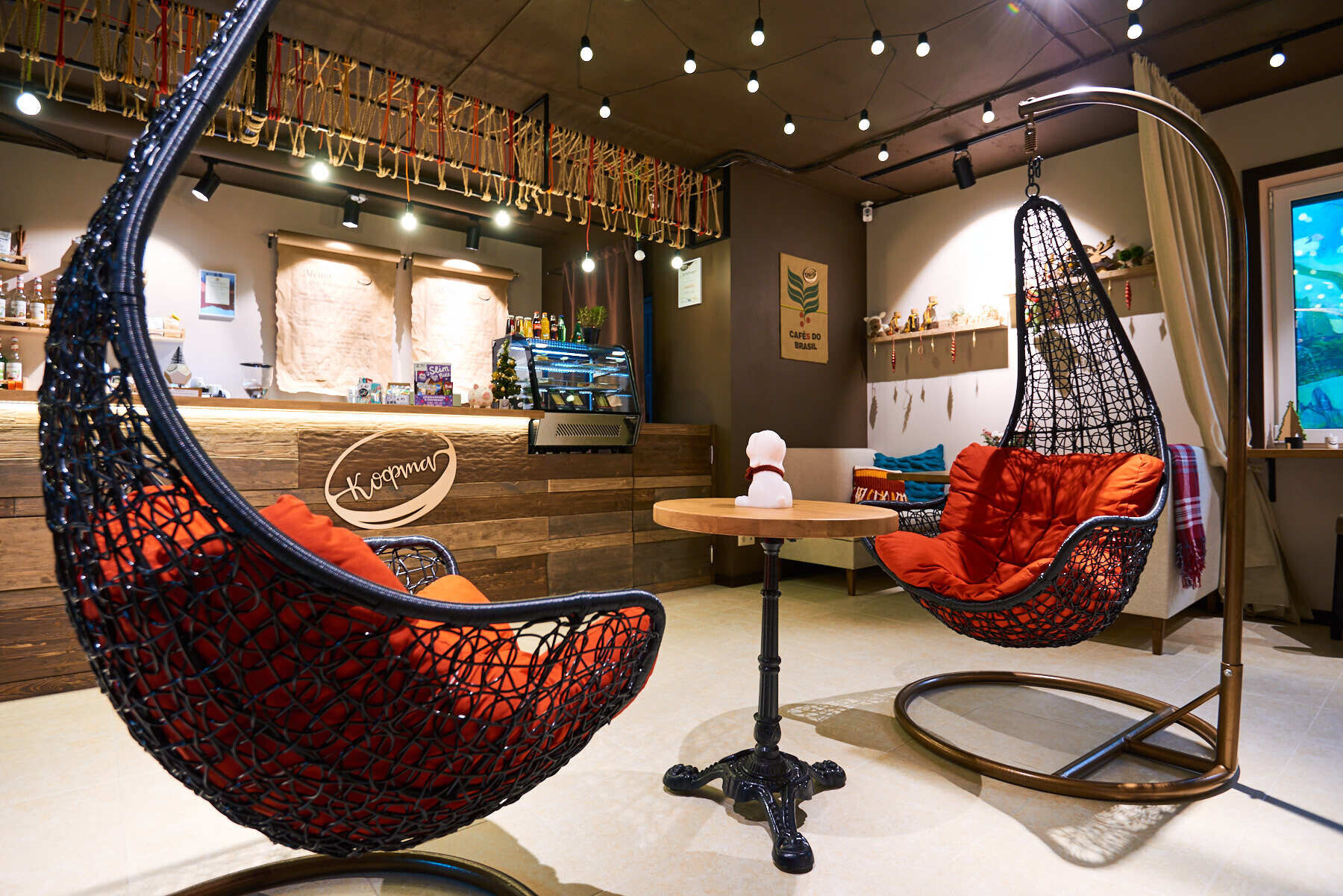В кофейне признаются, что излюбленные места гостей — диваны у барной стойки и стол, который находится рядом с детской зоной. Те же, кто приходят за заказами навынос, выбирают большие подвесные кресла. Но в кофейне предупреждают: стоит в них только сесть — и не заметишь, как пролетит час. Уж очень удобные.
