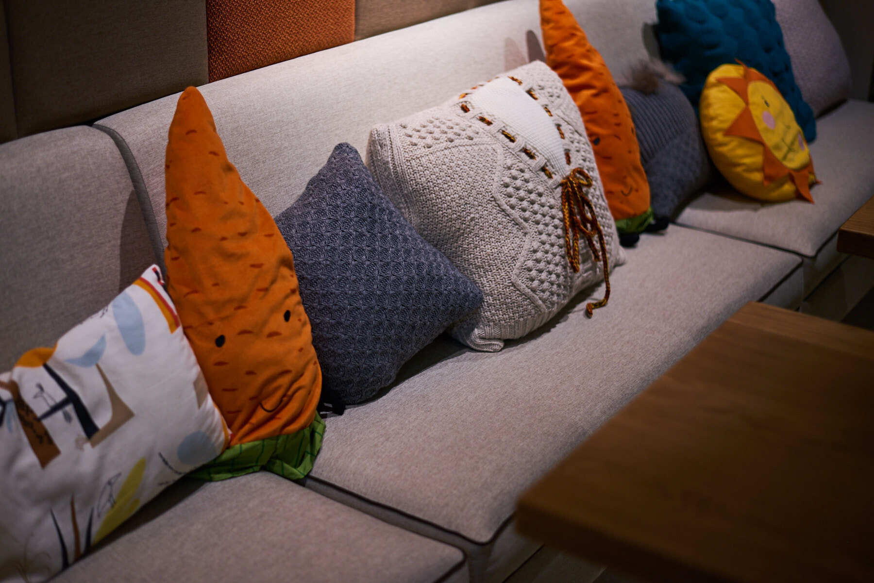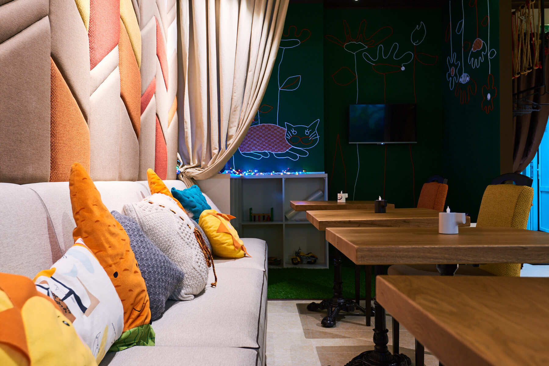 Для самых маленьких гостей в кофейне есть специальная детская зона. Пока мамы и папы пьют кофе и ведут скучные взрослые разговоры, дети могут играть, рисовать, складывать пазлы и смотреть мультики. Но самое любимое занятие малышей, как уверяют в «Кофте», — ползать по напольному покрытию, которое выполнено в виде зеленой травы.