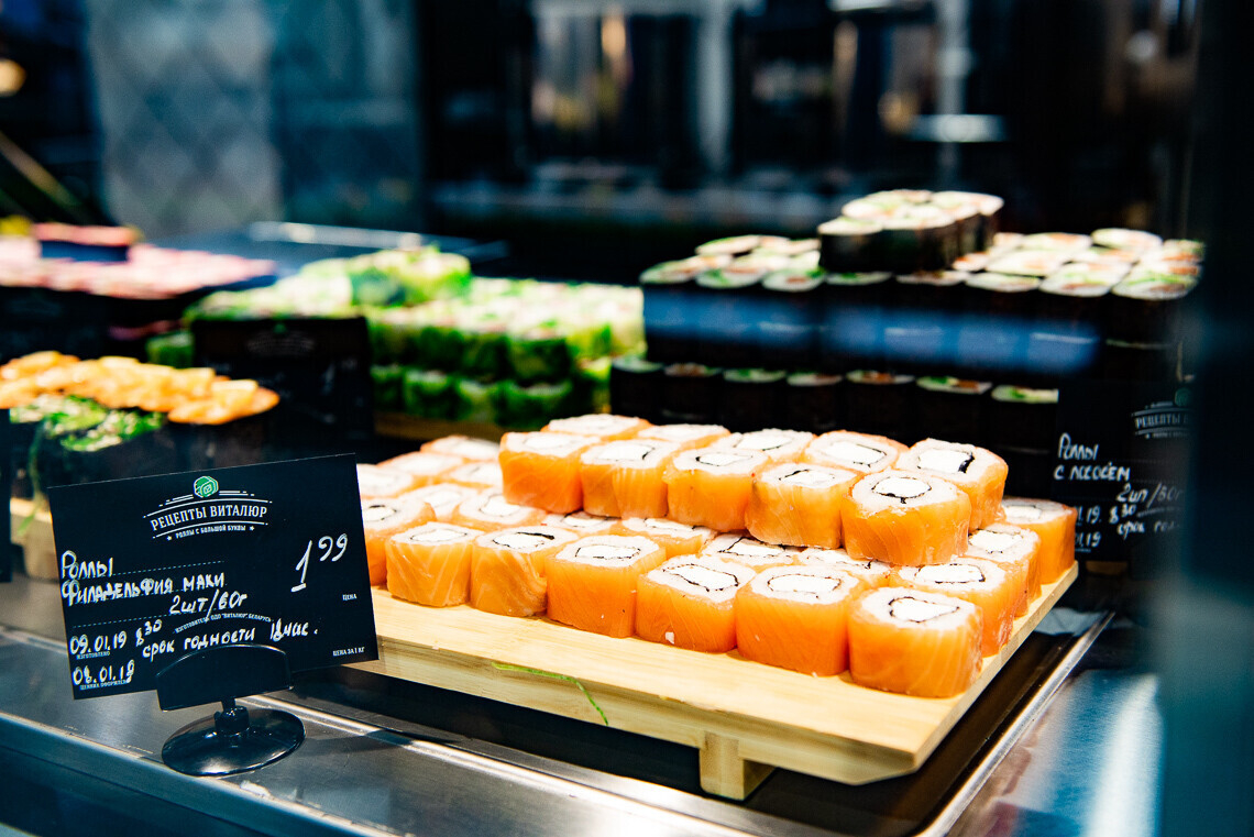Ассортимент роллов фуд-корта «Виталюр» пополнили новинки — гунканы и нигири, а линейка фаст-фуда охватывает позиции от традиционных бургеров, сэндвичей и шаурмы до панини и бейглов.