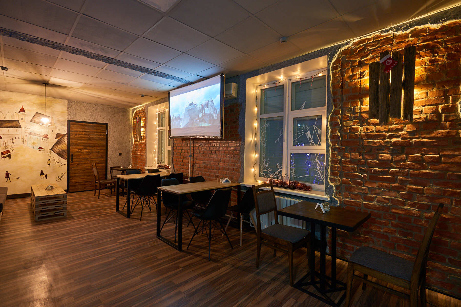 Каждый вечер в кофейне устраивают показ фильмов: для этого специально оборудован проектор, однако это не все приятные бонусы для гостей. Например, в прошедшие праздники в Campus печатали рождественские и новогодние поздравления на кофе.
