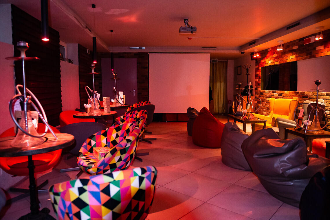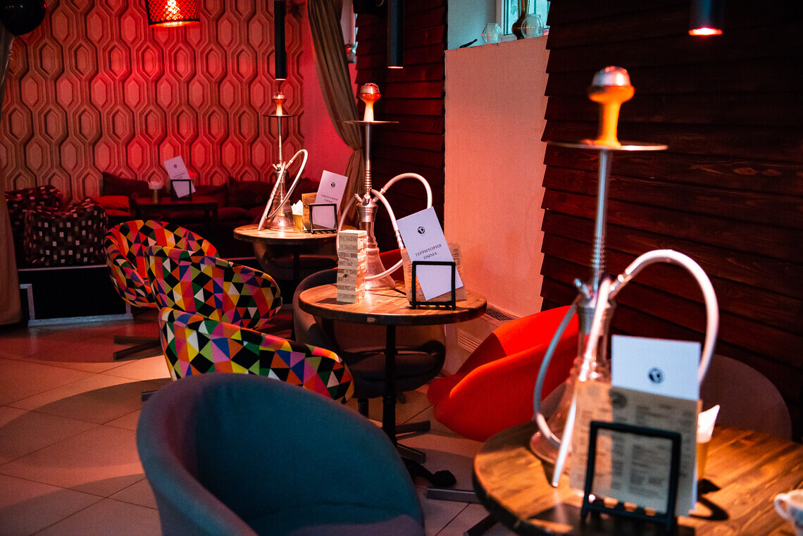 В понедельник и вторник в кальянной можно поиграть в настольные игры: здесь есть Uno, «Мафия», Alias и многое другое. Если в четверг вы захотите организовать просмотр фильма вне дома — заходите в «Территорию дыма» на бесплатный показ топовых кинолент. Пятница — суббота — время интерактивов. В эти дни будут проходить шумные вечеринки, с участием диджеев и музыкантов.