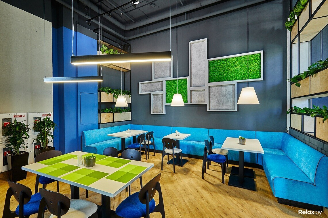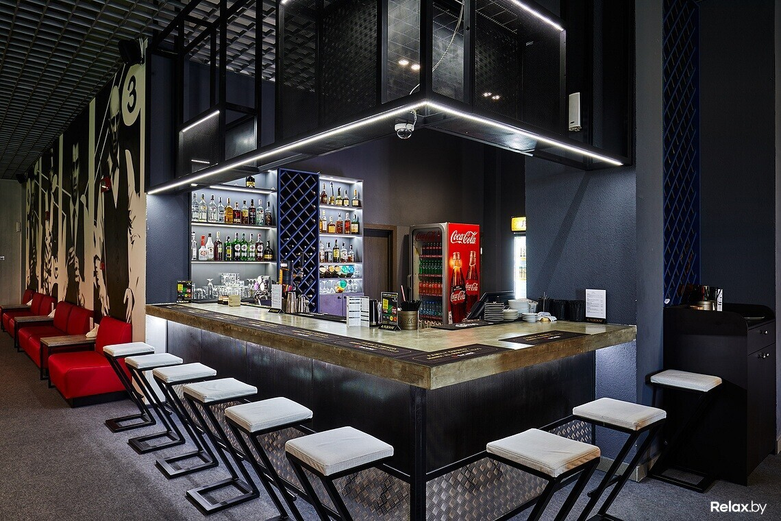 Бильярдный зал обслуживает бар с коктейльной картой, различными видами алкогольных и безалкогольных напитков. В кафе будет европейская кухня с акцентом на гриль: мясо, рыба, овощи и многие другие блюда. Вместе с этим сразу заработает обеденное предложение. Пока кафе запустили в тестовом режиме, а уже в марте состоится официальное торжественное открытие.