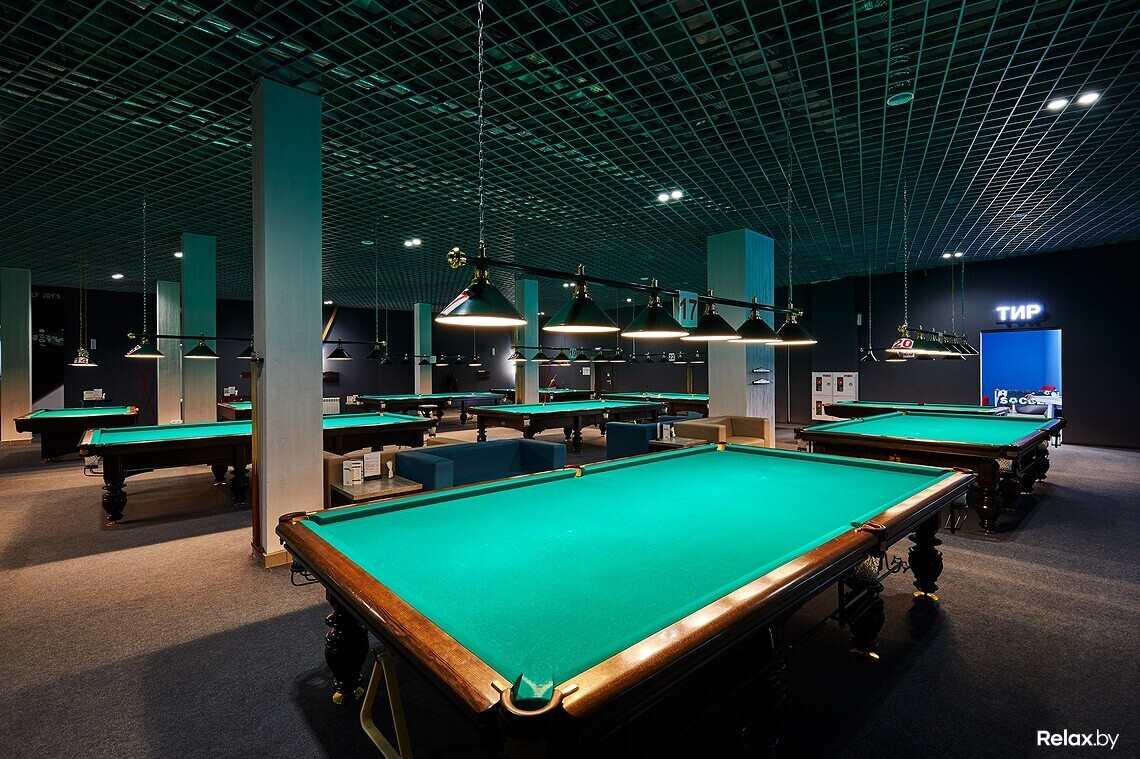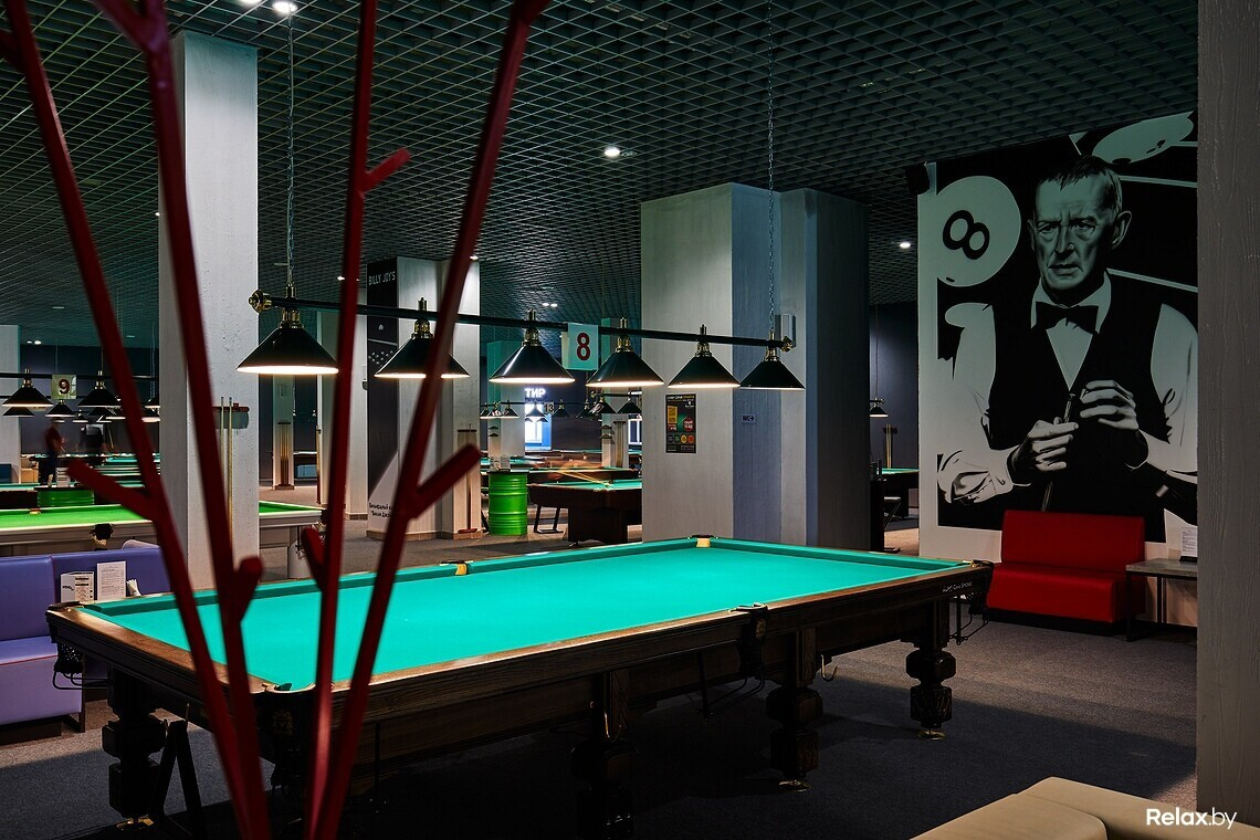 В клубе стоят 12 больших столов для русского бильярда, 10 столов для американского пула и один для снукера. Цены за час игры — от 10 до 13 рублей, однако до 15:00 поиграть здесь можно вдвое дешевле.