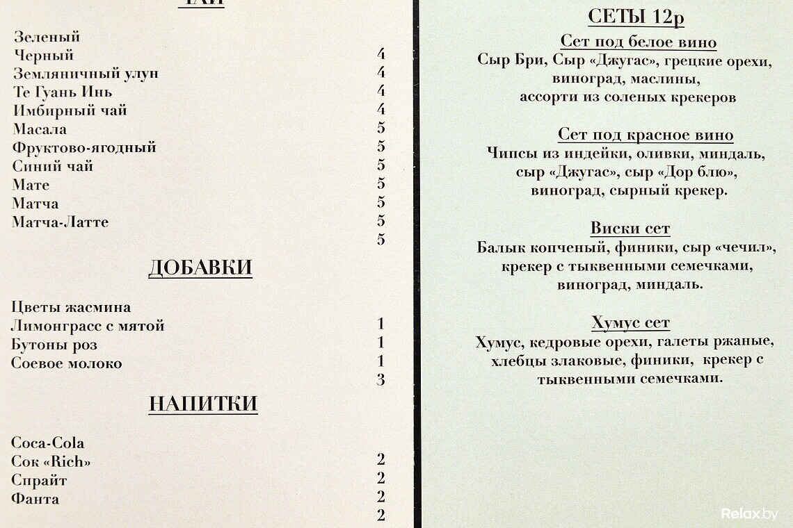 Помимо этого, в заведении есть винная карта и специальные сеты к вину.