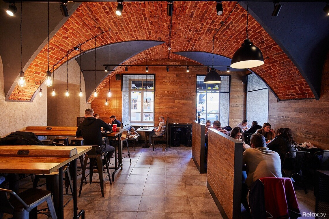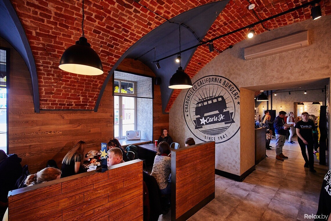 Ресторан фастфуда Carl’s Junior расположился в помещении исторического здания в центре Минска. Ему в наследство «перешли» аутентичные арочные своды и кирпичная кладка, которые оставили здесь нетронутыми. В помещении ресторана создали «лофтовую» атмосферу, оформив его деревом и подобрав соответствующую мебель. Кстати, столы в Carl’s Junior оснащены розетками и USB-портами, где можно подзарядить телефон или любое другое устройство.