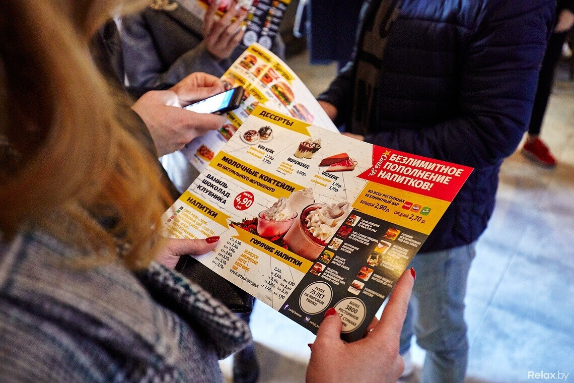 — Вы оформляете заказ на кассе, получаете номер чека, садитесь за свободный столик и ждете свой заказ, — рассказывает руководитель проекта Carl’s Junior в Беларуси Александра Петрище. — Как только он будет готов, официант сразу его принесет. Это очень удобно: вам не нужно толпиться возле касс в ожидании своего заказа.