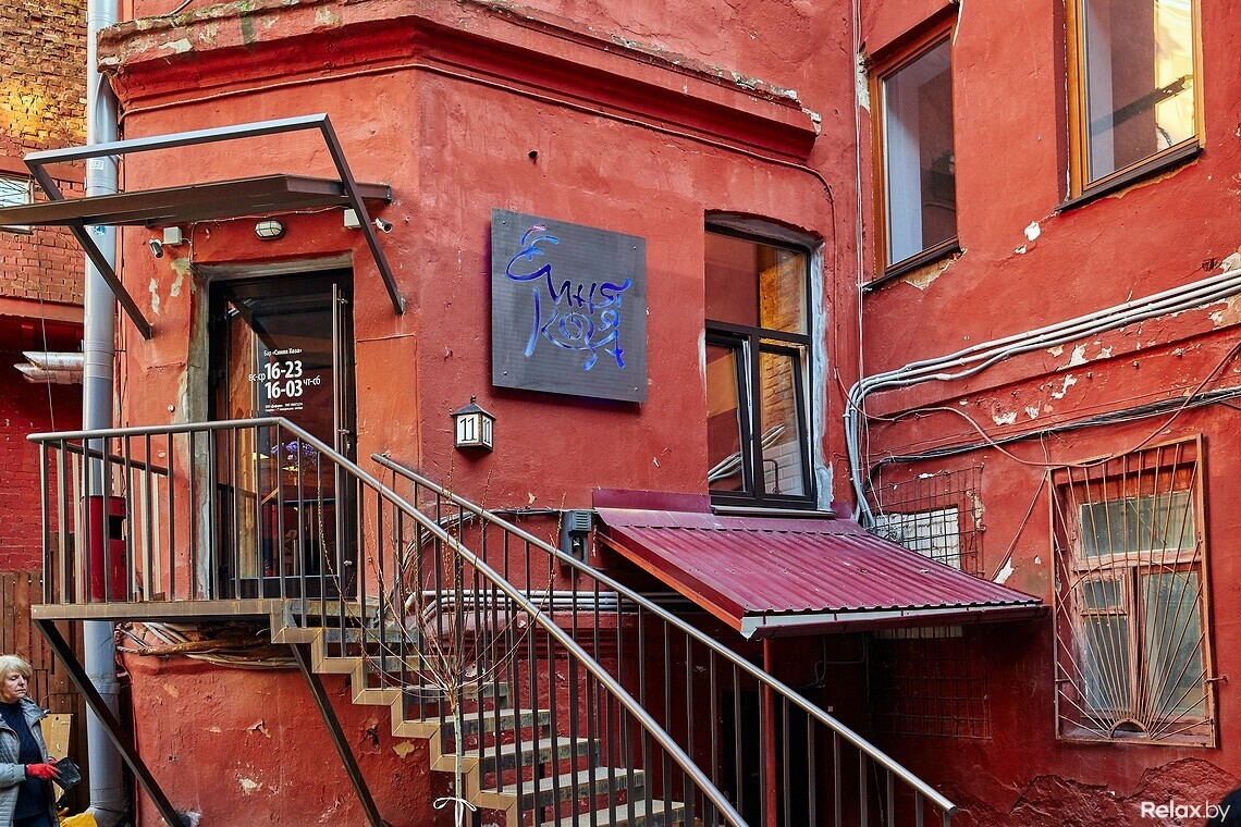 — Для меня важно было сохранить историю этого помещения, поэтому мы долго изучали, что же здесь было раньше, — рассказывает Ксения. — Мы покопались в архивах и узнали, что на этом месте раньше располагалась гостиница, затем советские конторы, после войны, в 50-х годах здесь была булочная. С точки зрения истории, Красный дворик особо ничем не выделялся среди других городских дворов. Свое название он получил только в 90-х годах, после того, как кто-то выкрасил стены в красный цвет. Позже это место стало «магнитом» для креативных людей, которые проводили здесь разные мероприятия.