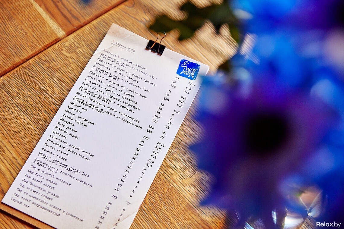 Чтобы сохранить творческую атмосферу и привлечь сюда не только молодежь, но и представителей минской богемы, владельцы заведения разработали меню с большим выбором закусок, которые идеально сочетаются с разными видами вин.